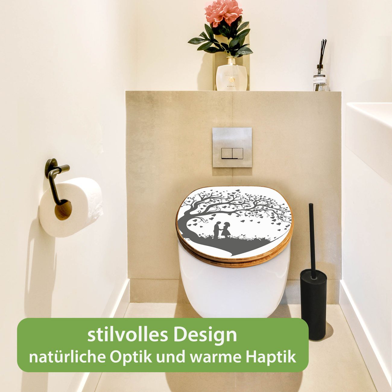 Design WC-Sitz Bambus Holz Motiv Romantisches Baumherz Silhouette 2