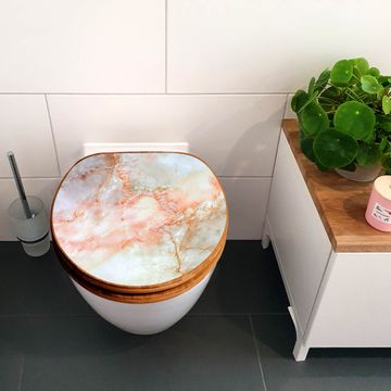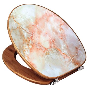 Design WC-Sitz Bambus Holz Motiv Rosa Marmor