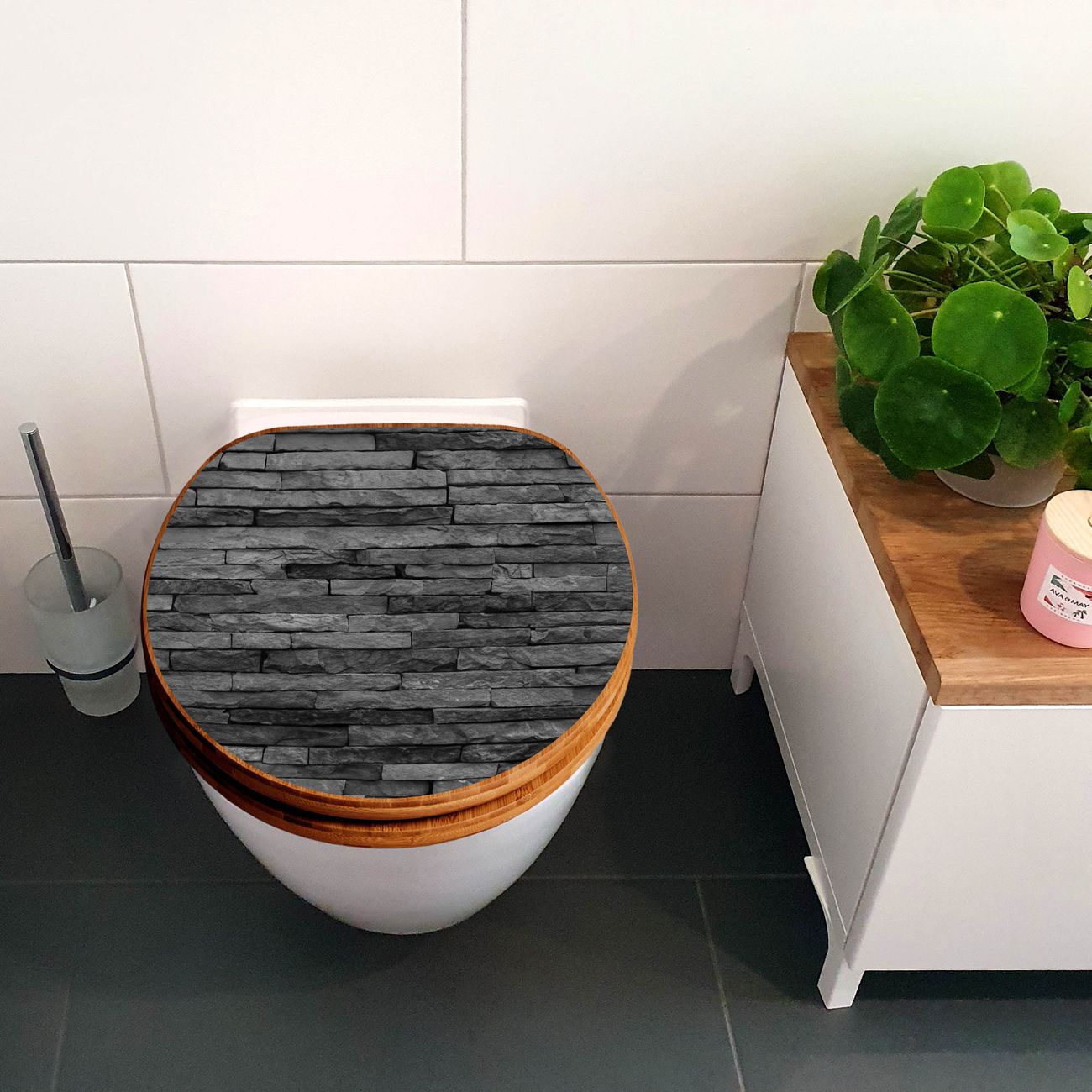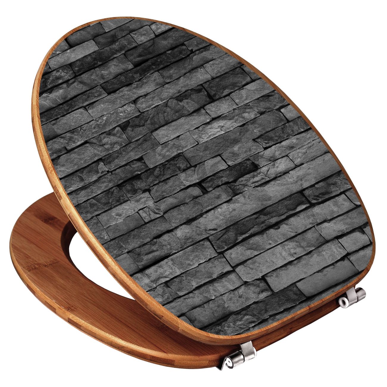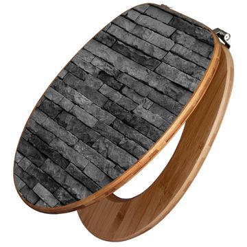 Design WC-Sitz Bambus Holz Motiv Rustikale Steinwand