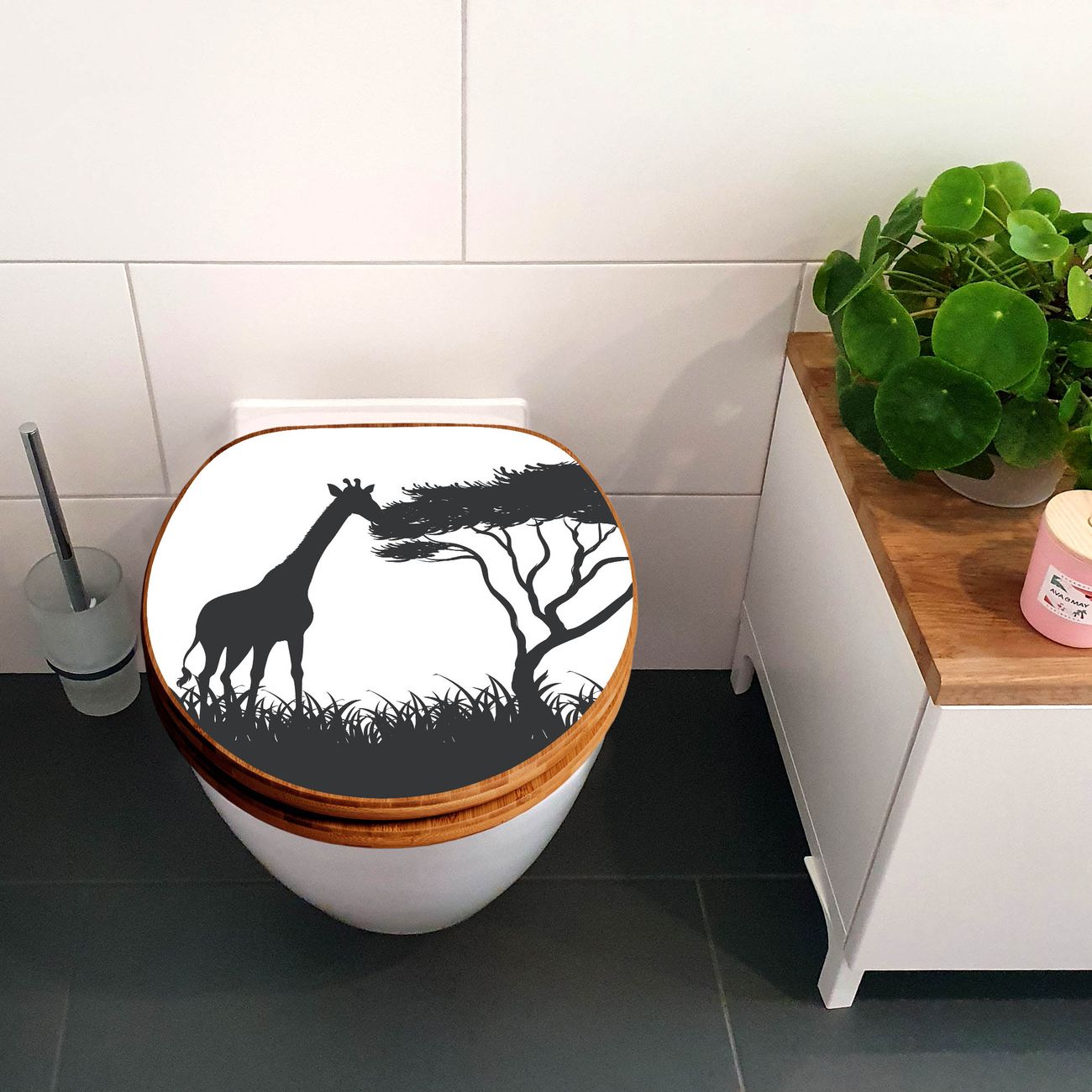 Design WC-Sitz Bambus Holz Motiv Savannen-Silhouette