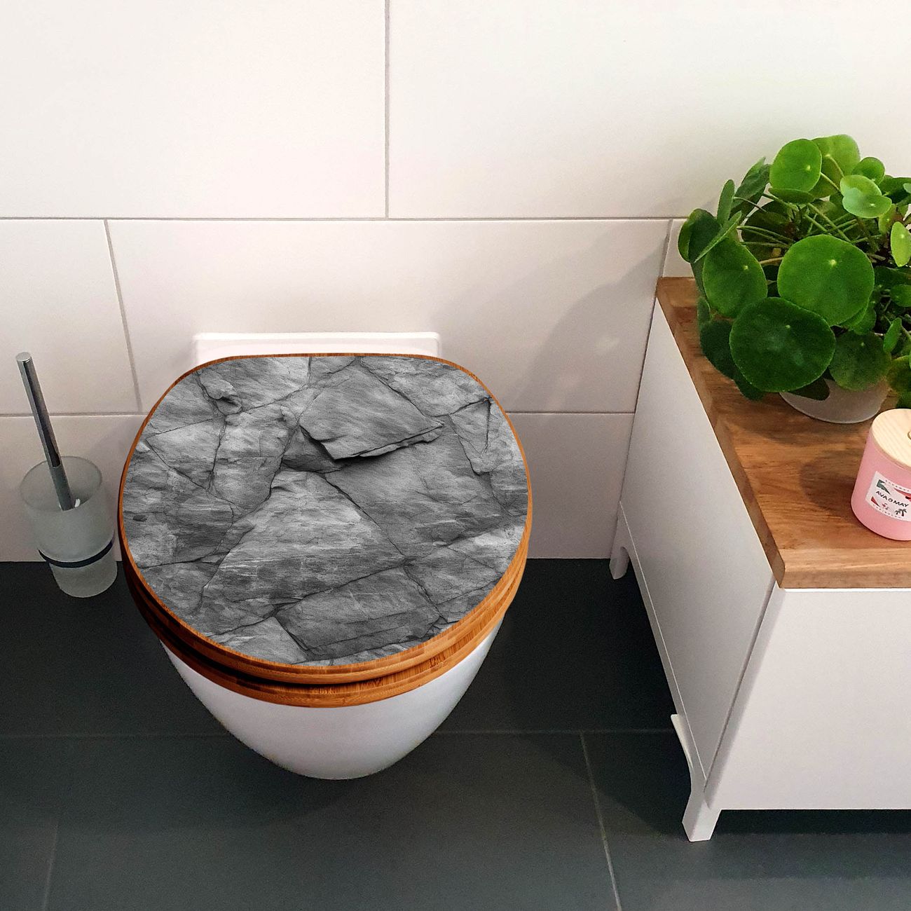 Design WC-Sitz Bambus Holz Motiv Schiefer Platte 2