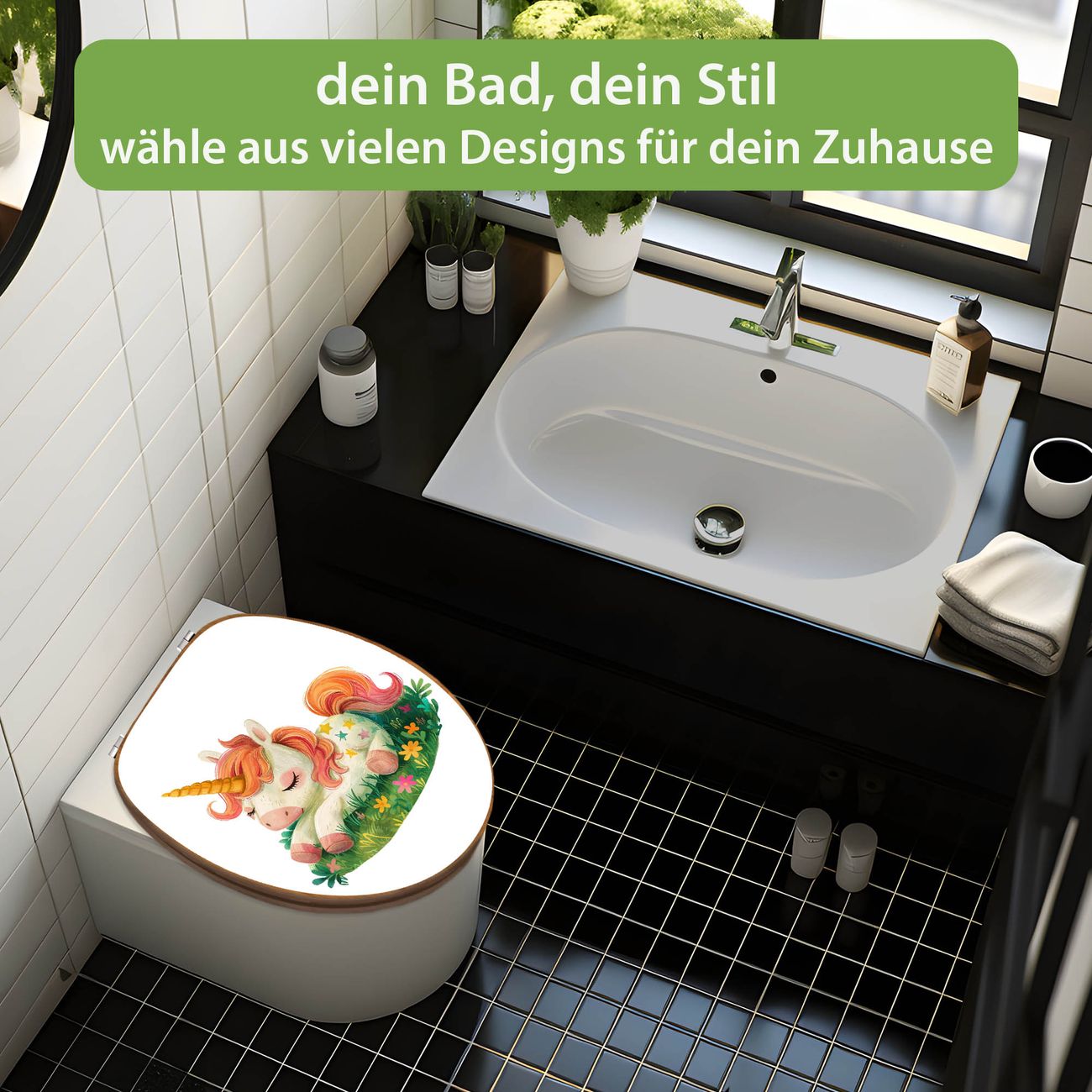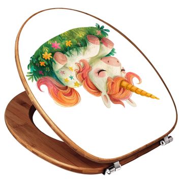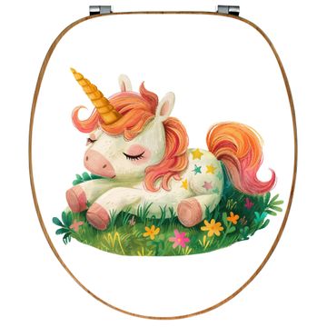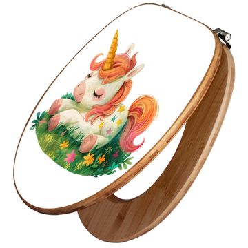 Design WC-Sitz Bambus Holz Motiv Schlafendes Einhorn
