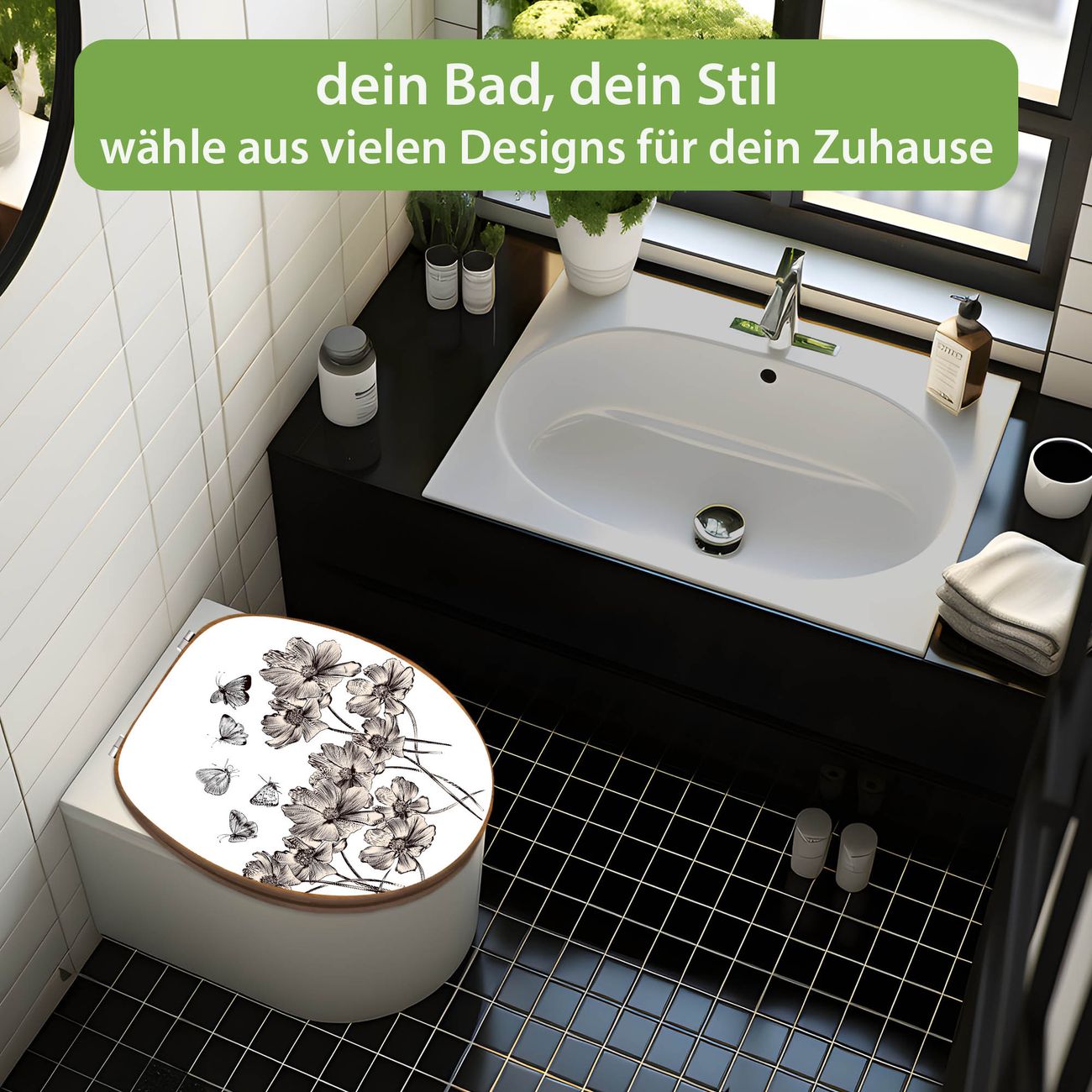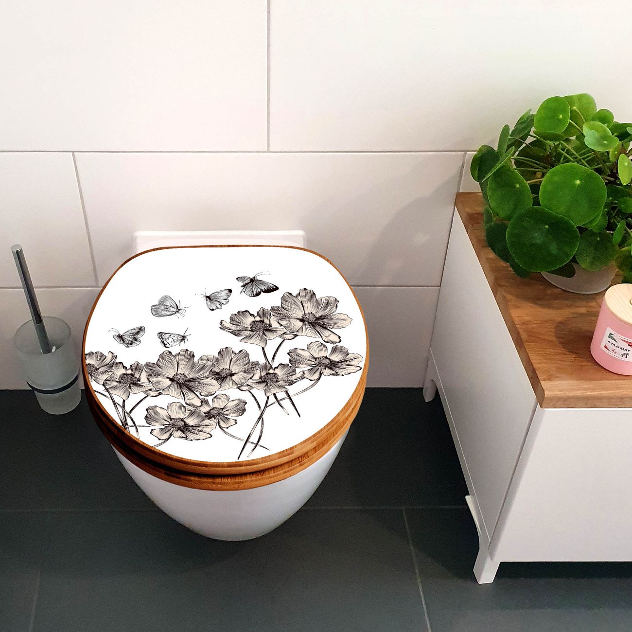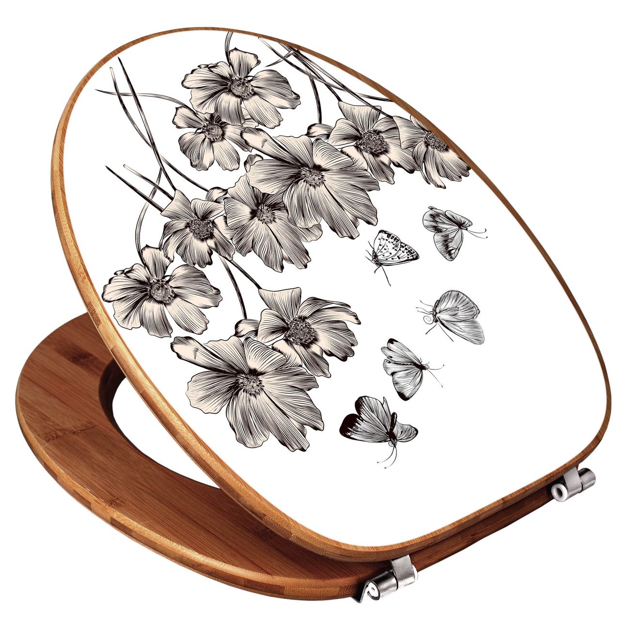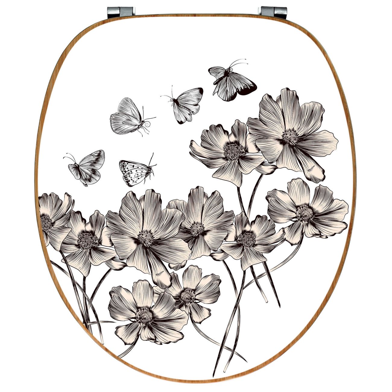Design WC-Sitz Bambus Holz Motiv Schmetterlingsgarten