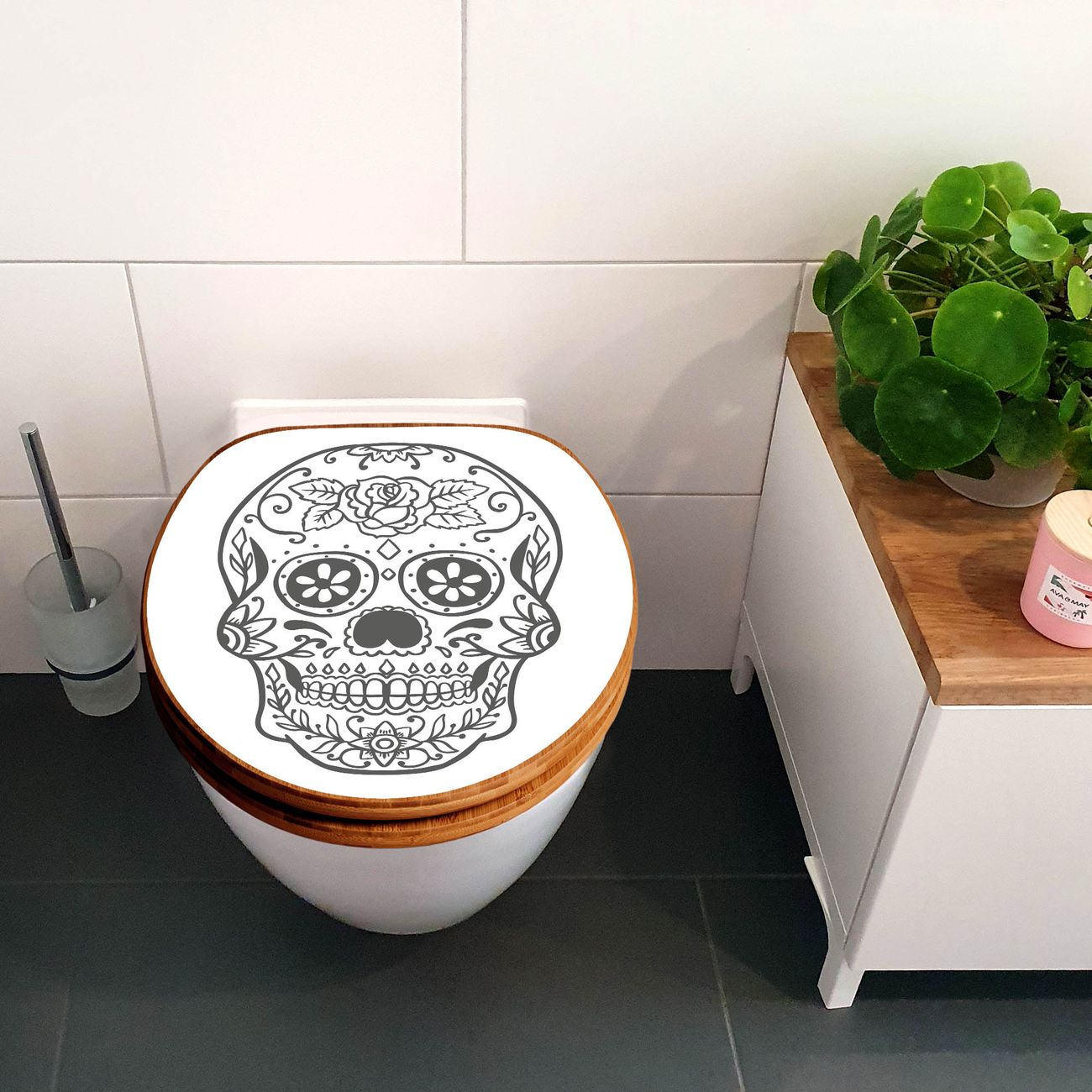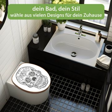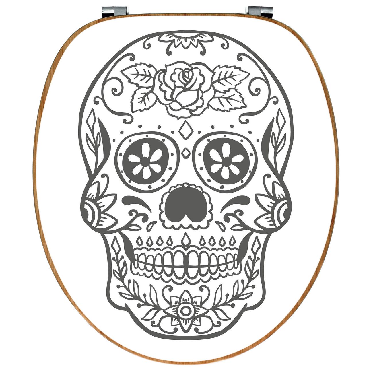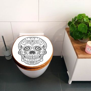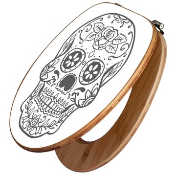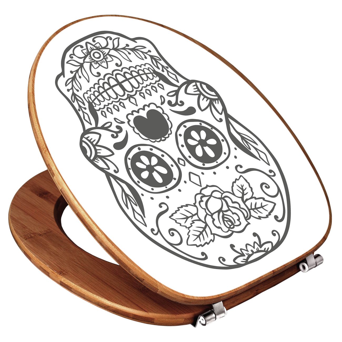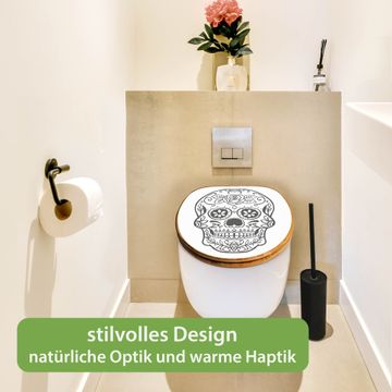 Design WC-Sitz Bambus Holz Motiv Schwarz-Weiß Sugar Skull