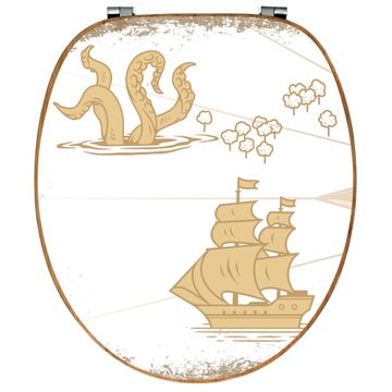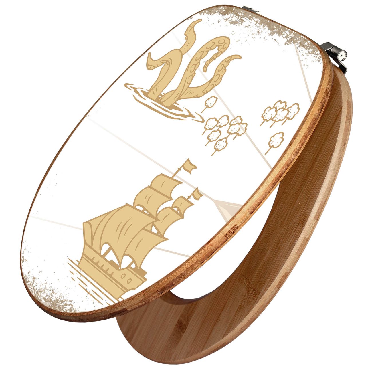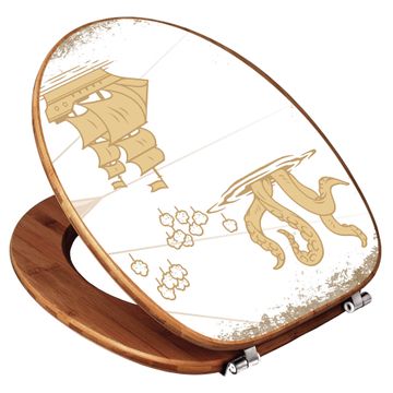 Design WC-Sitz Bambus Holz Motiv Seemonster und Segelschiff
