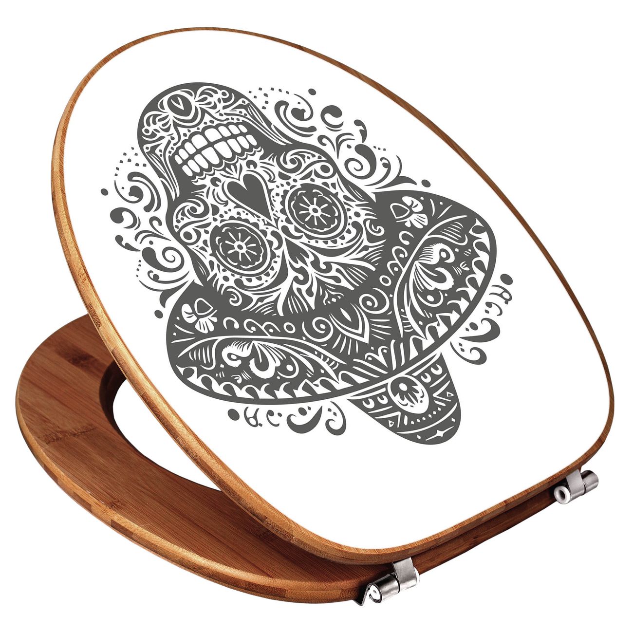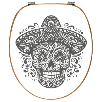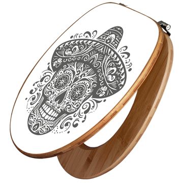 Design WC-Sitz Bambus Holz Motiv Sombrero Totenkopf