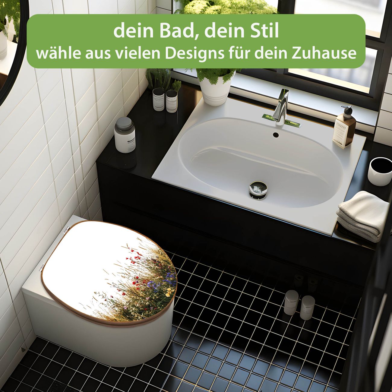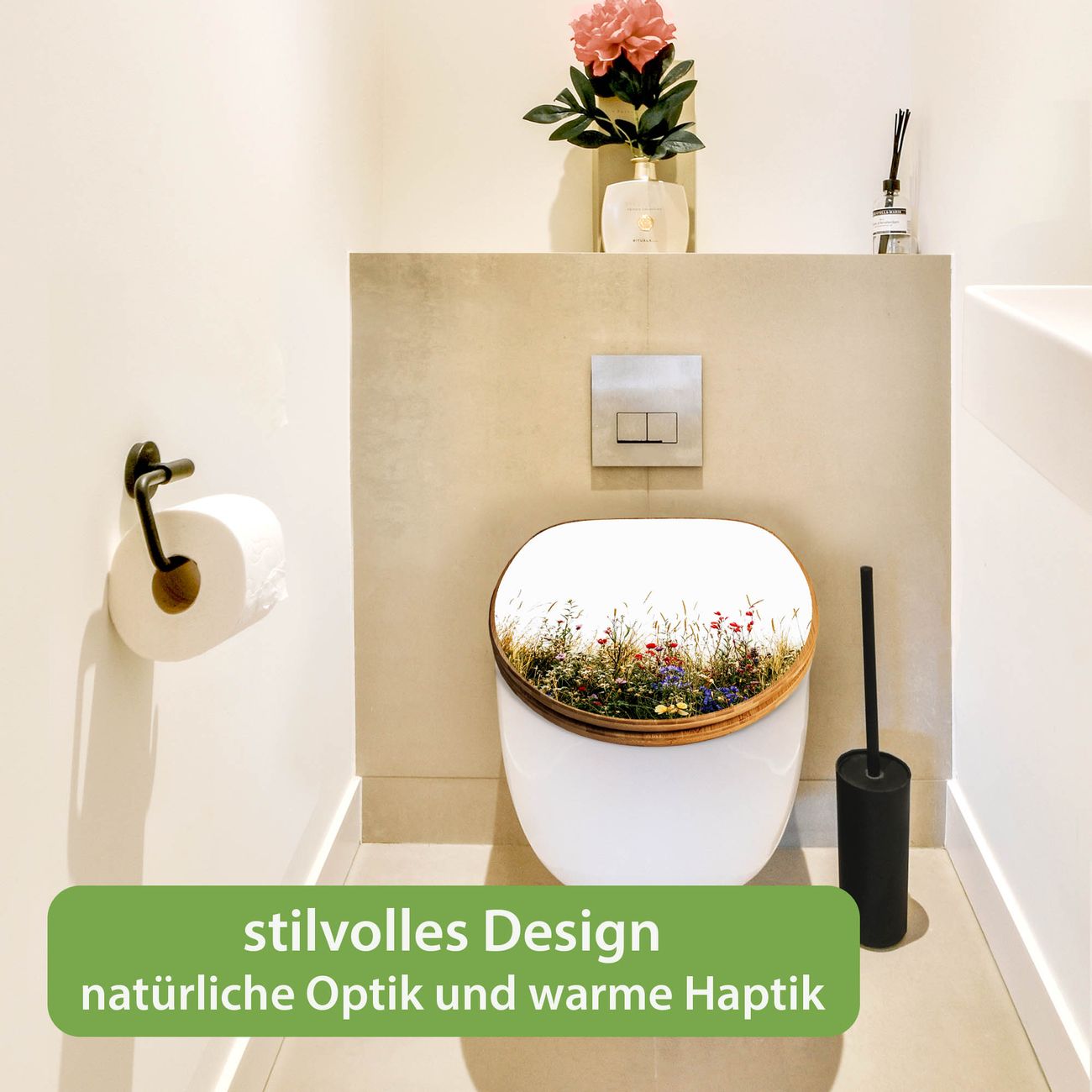 Design WC-Sitz Bambus Holz Motiv Sommerliche Blumenwiese