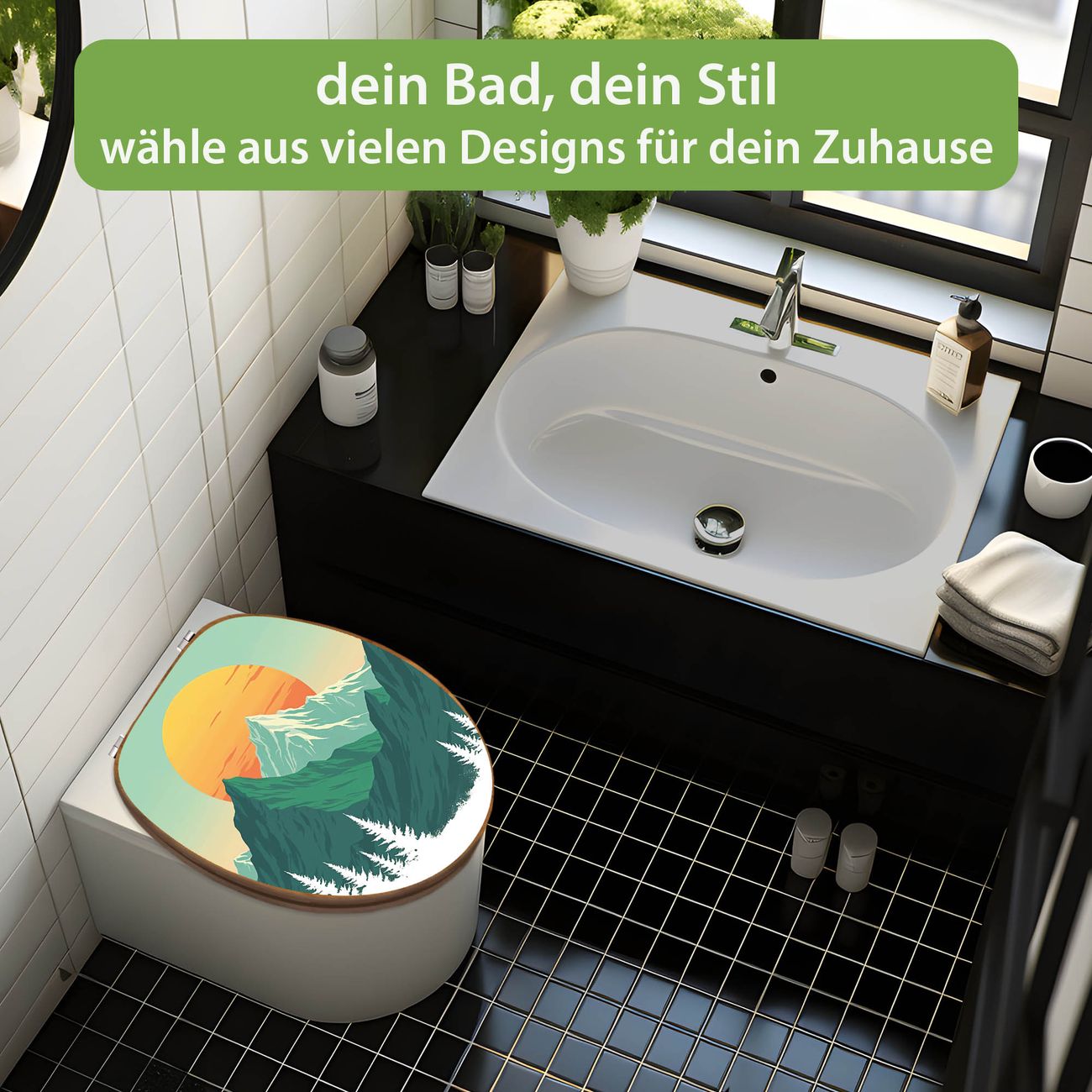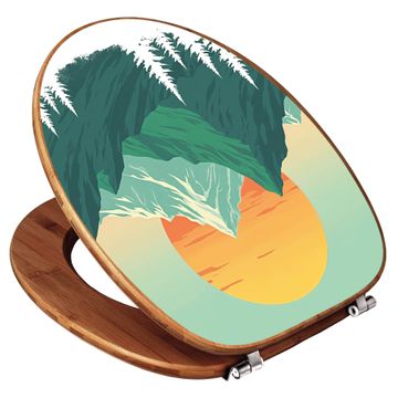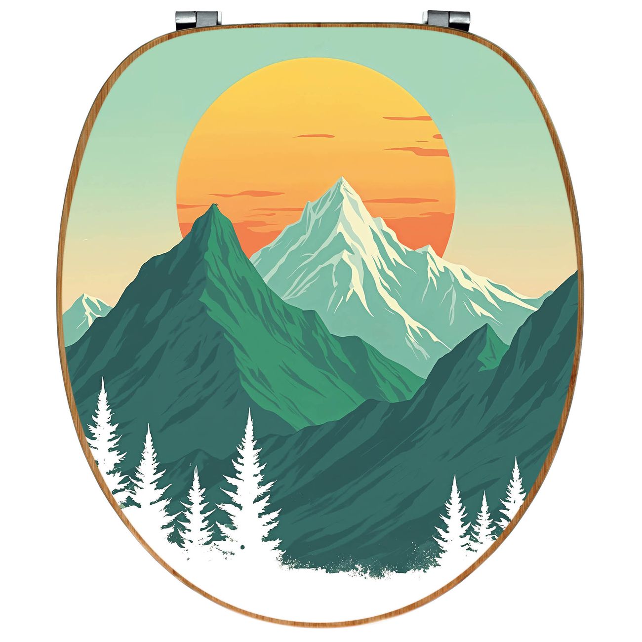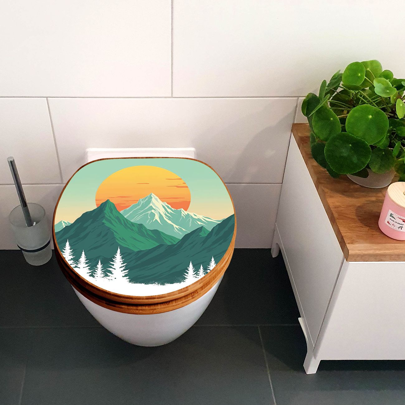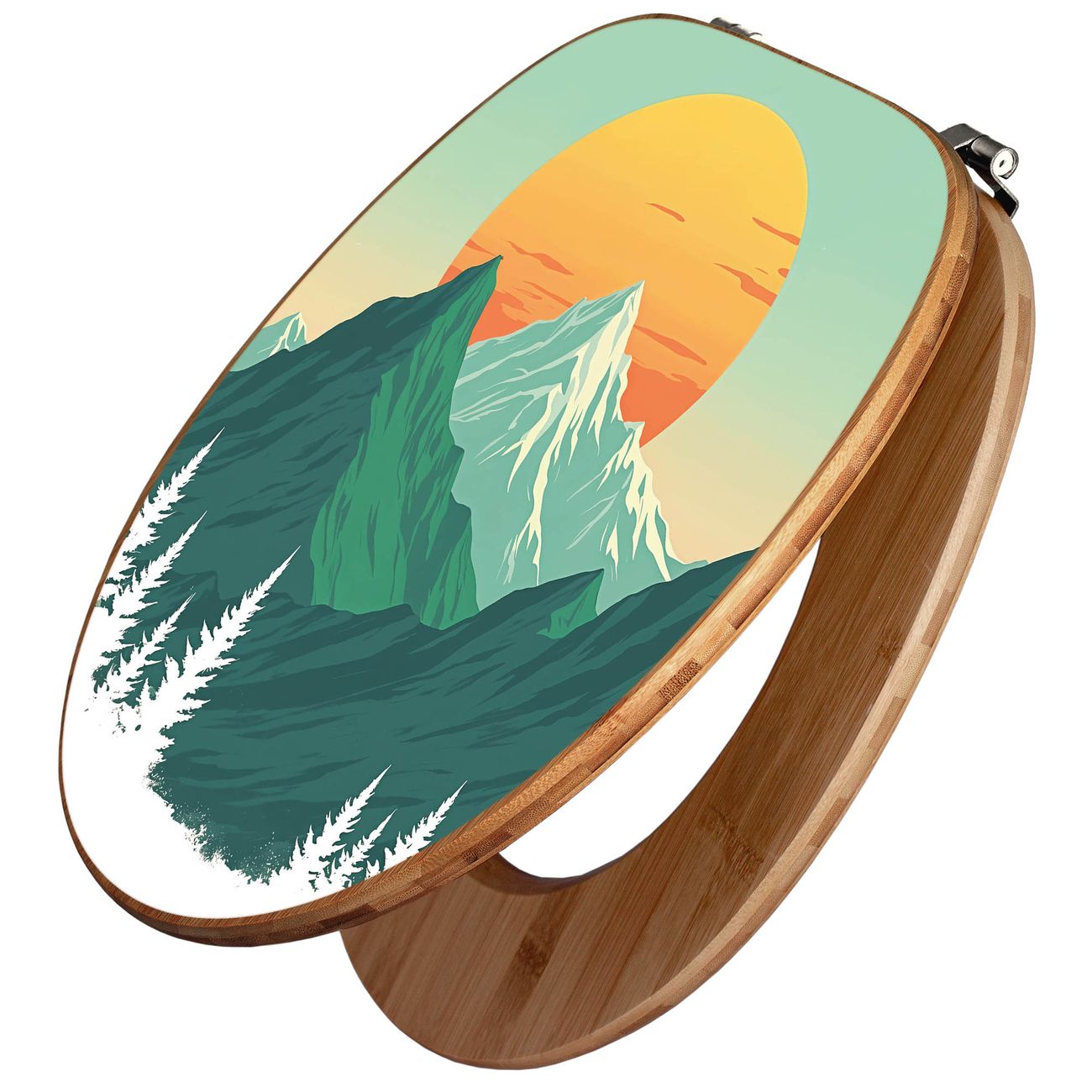 Design WC-Sitz Bambus Holz Motiv Sonnenaufgang über den Bergen