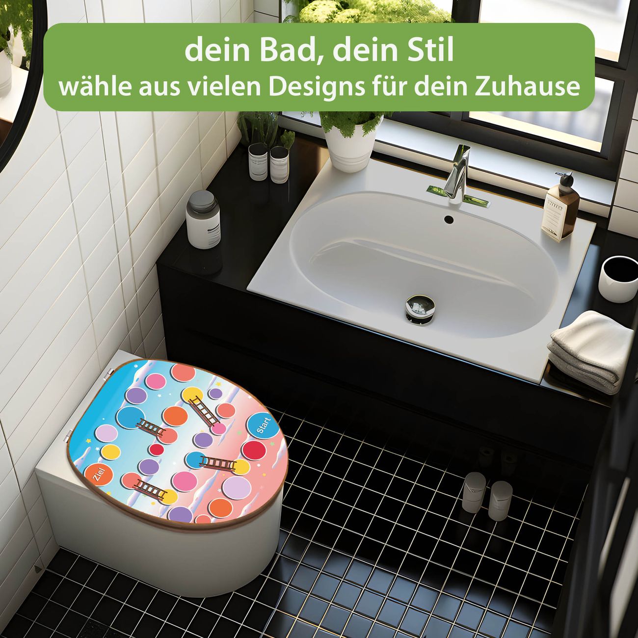 Design WC-Sitz Bambus Holz Motiv Spielbrett 1