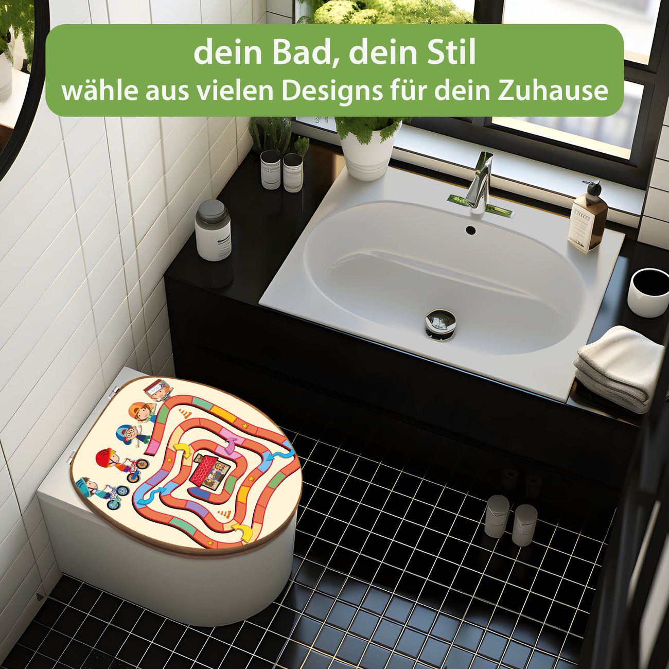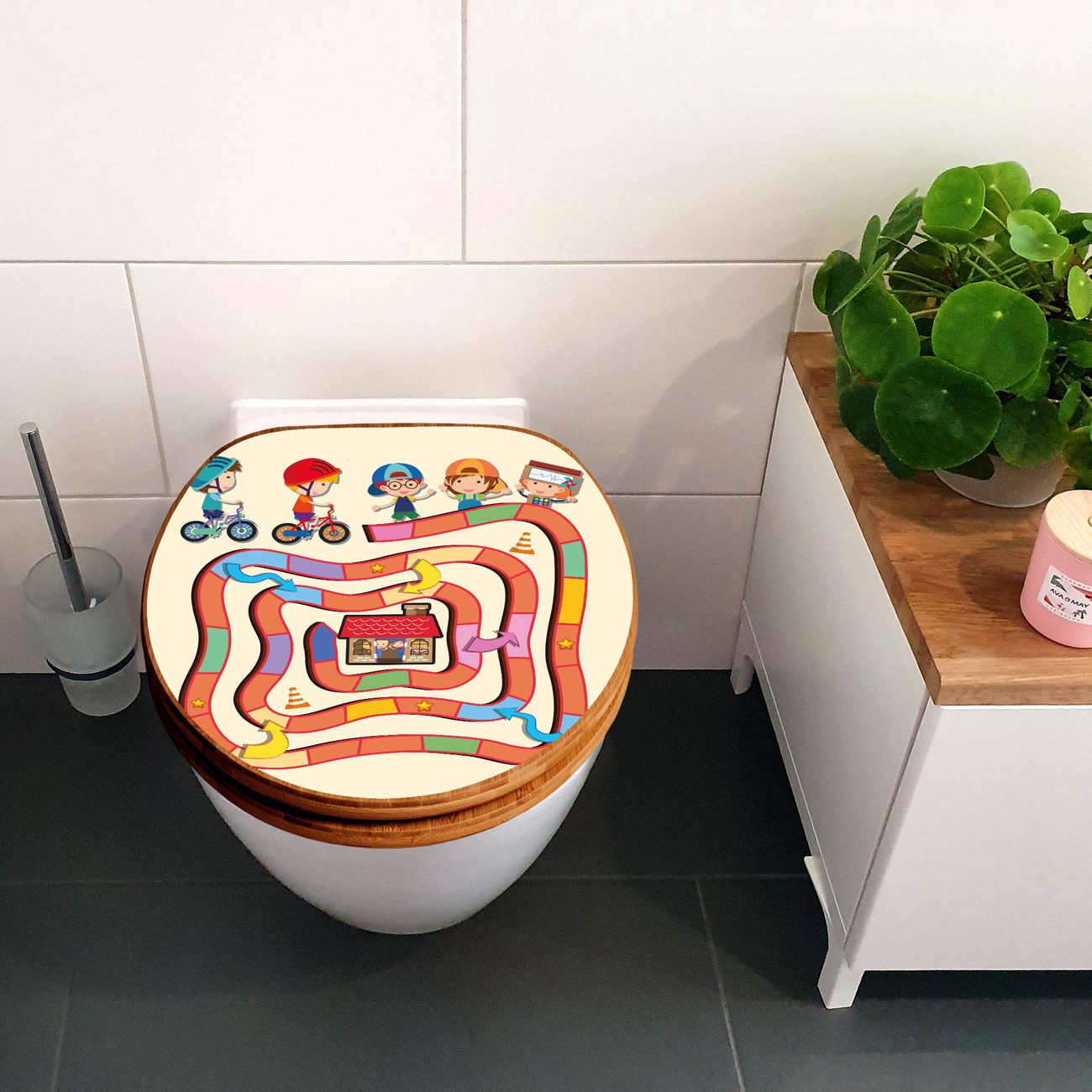 Design WC-Sitz Bambus Holz Motiv Spielbrett 2