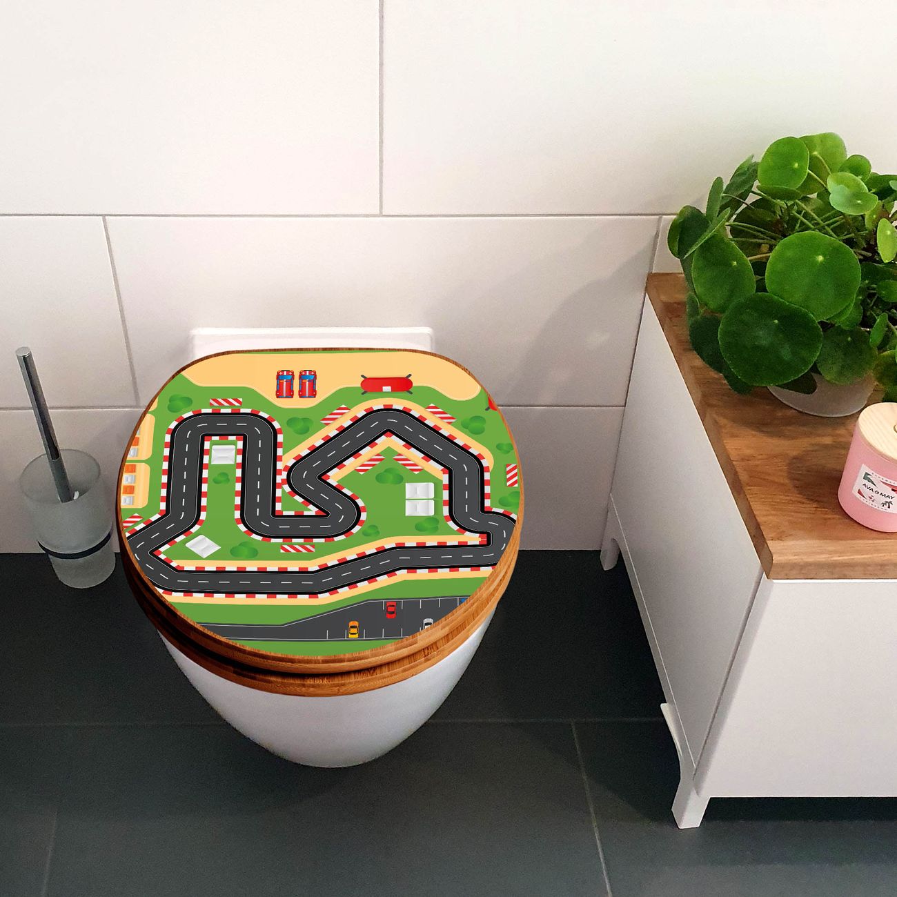Design WC-Sitz Bambus Holz Motiv Spielstraße 1