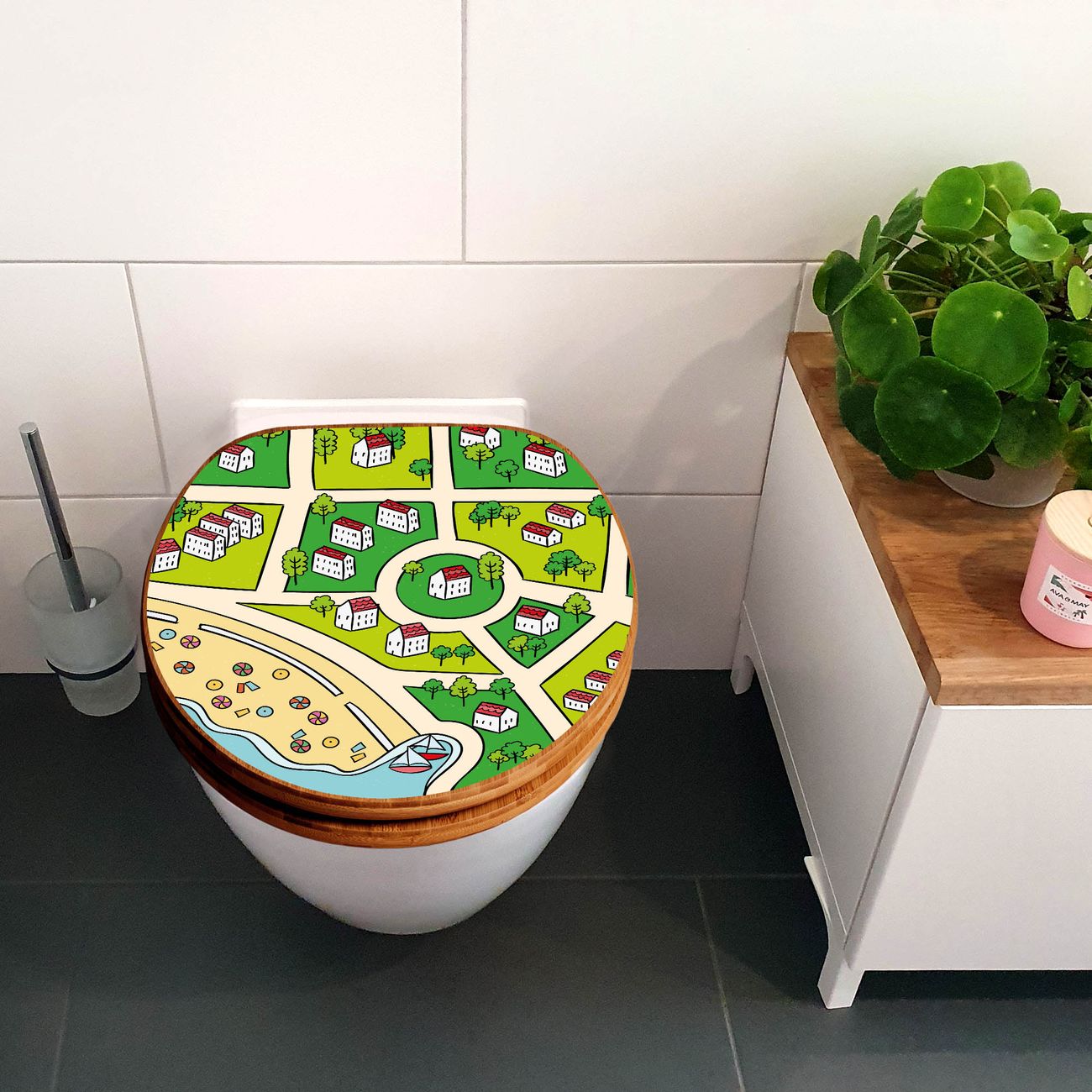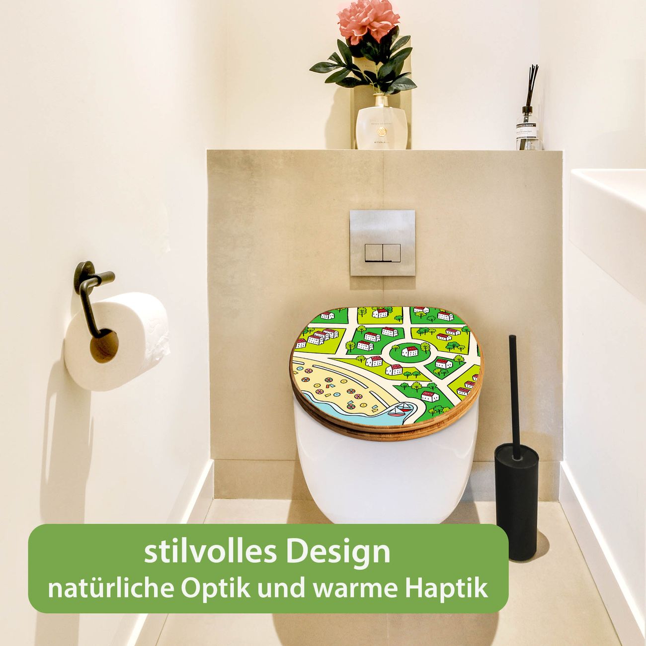 Design WC-Sitz Bambus Holz Motiv Spielstraße 5