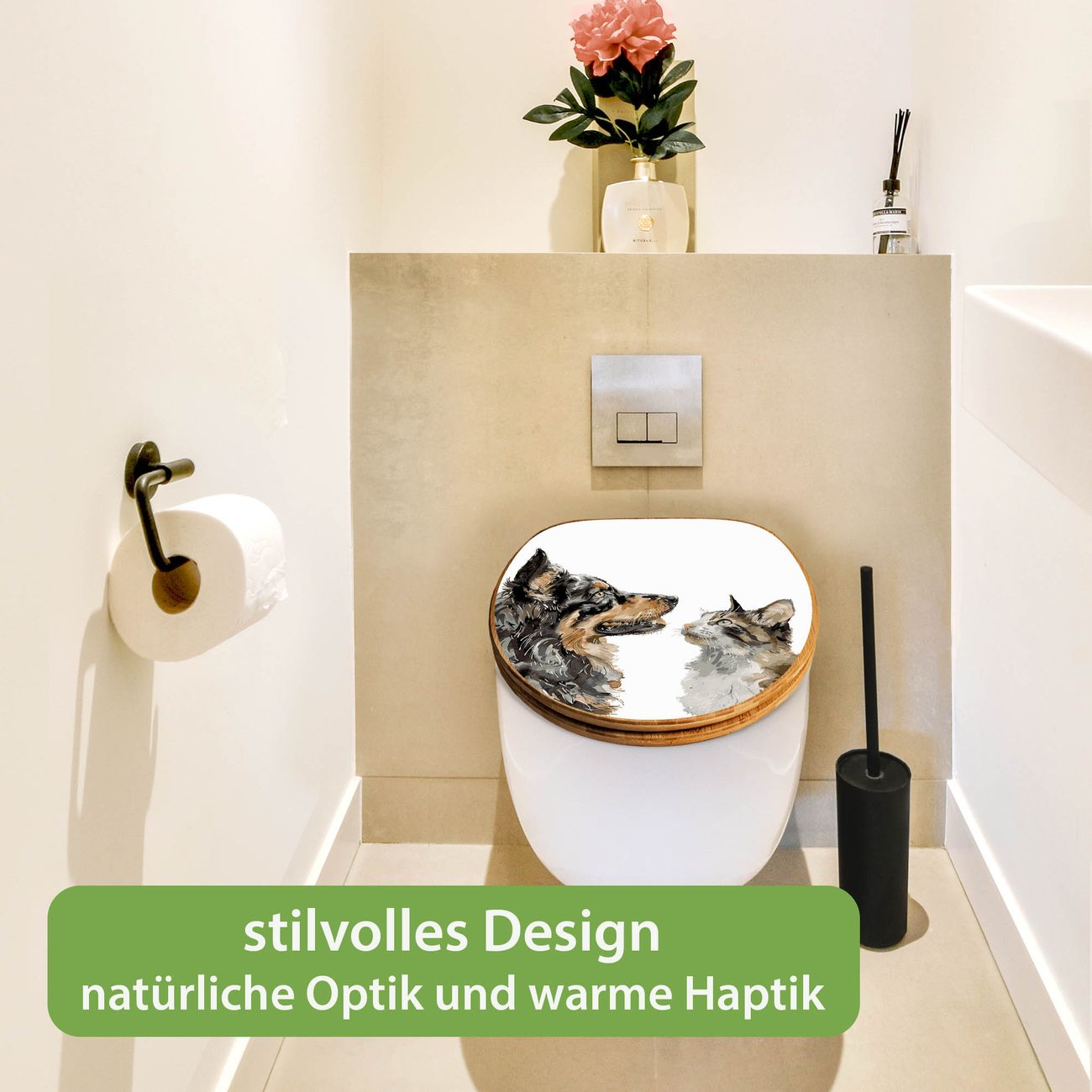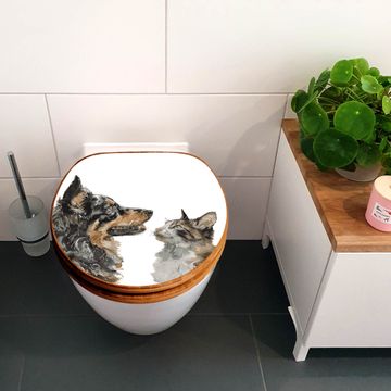 Design WC-Sitz Bambus Holz Motiv Tierische Begegnung