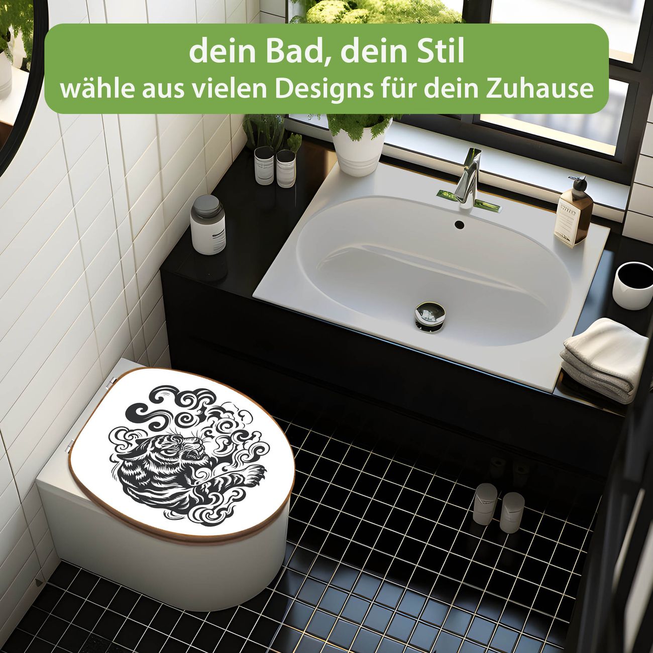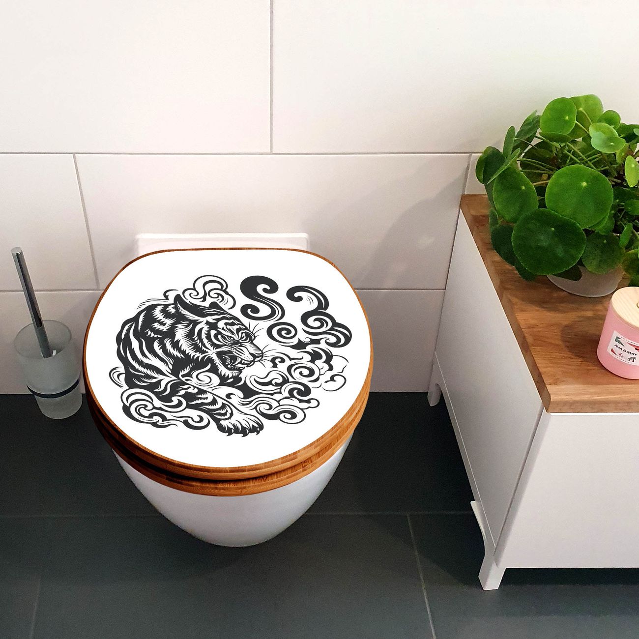 Design WC-Sitz Bambus Holz Motiv Tiger Silhouette