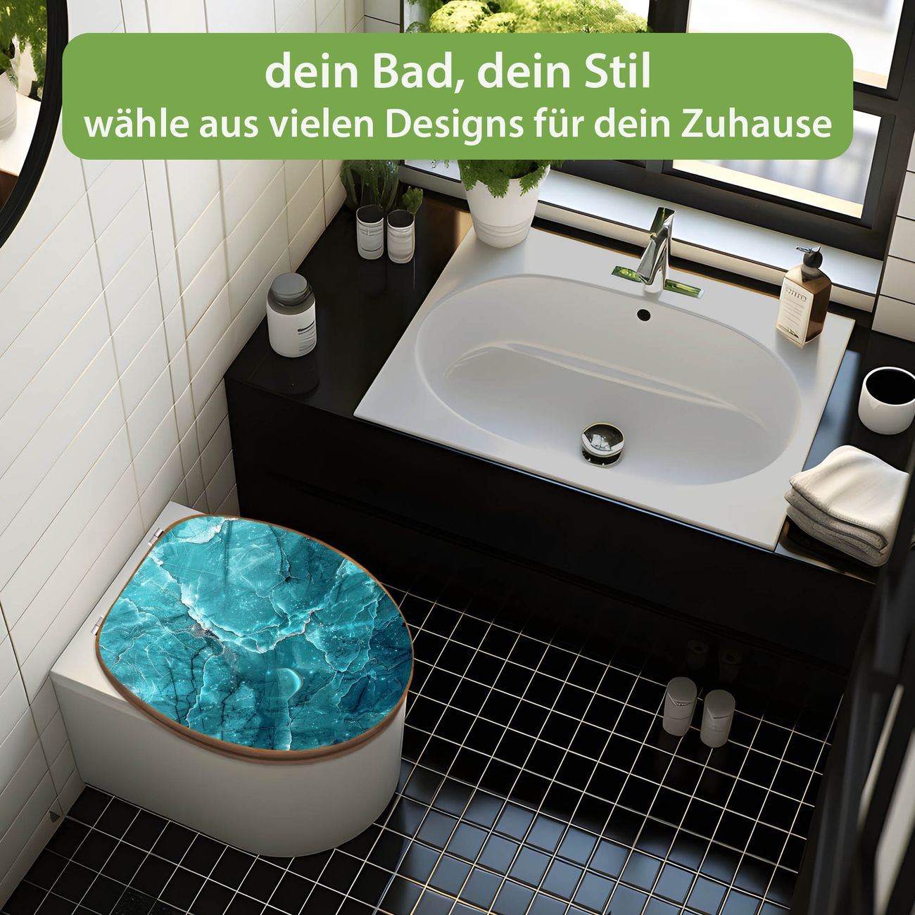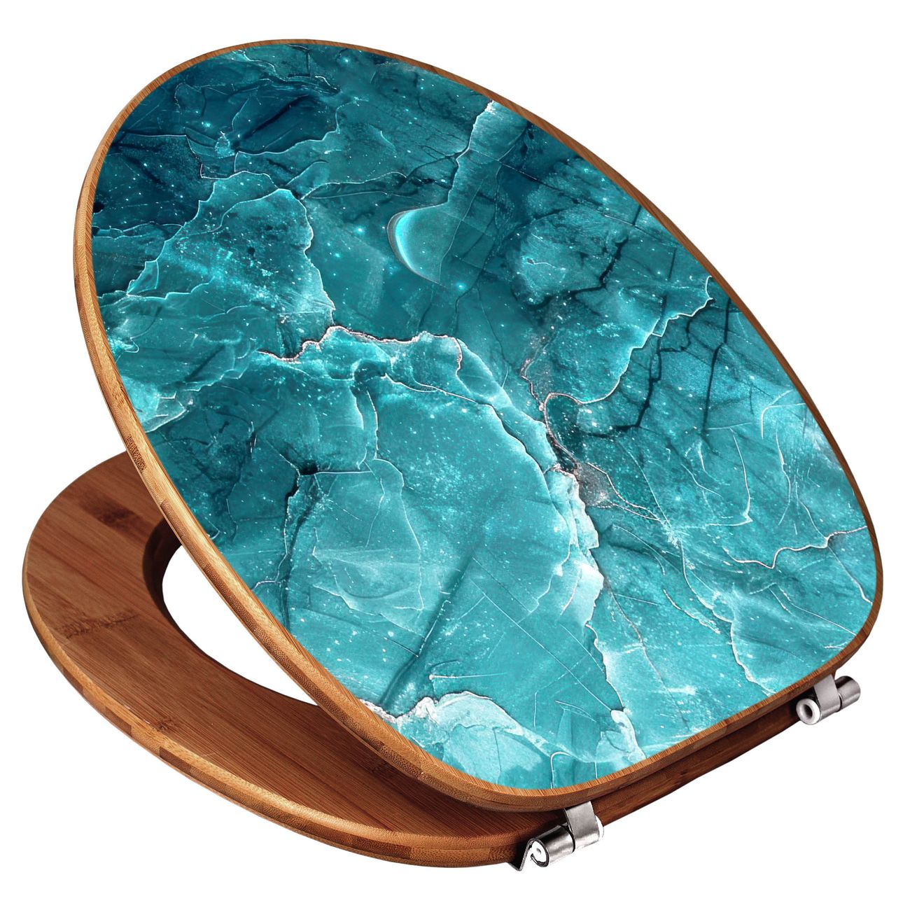 Design WC-Sitz Bambus Holz Motiv Türkiser Marmor