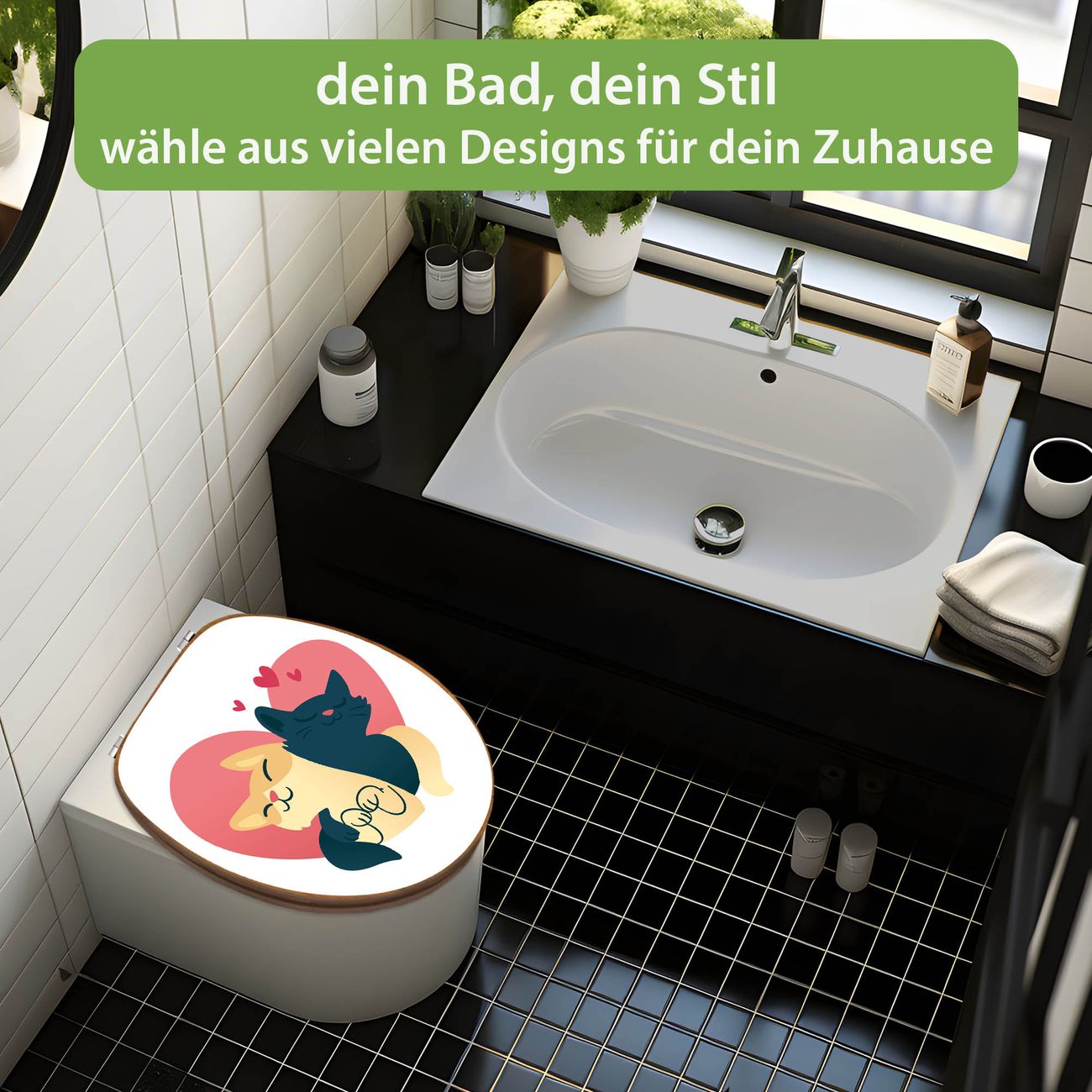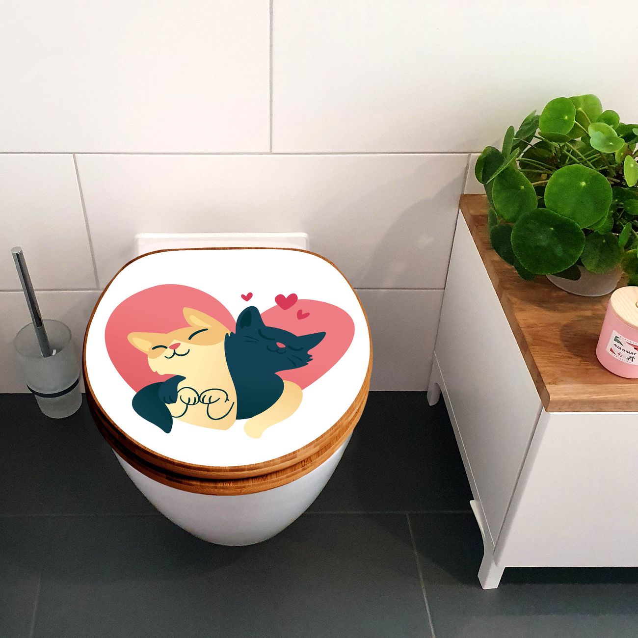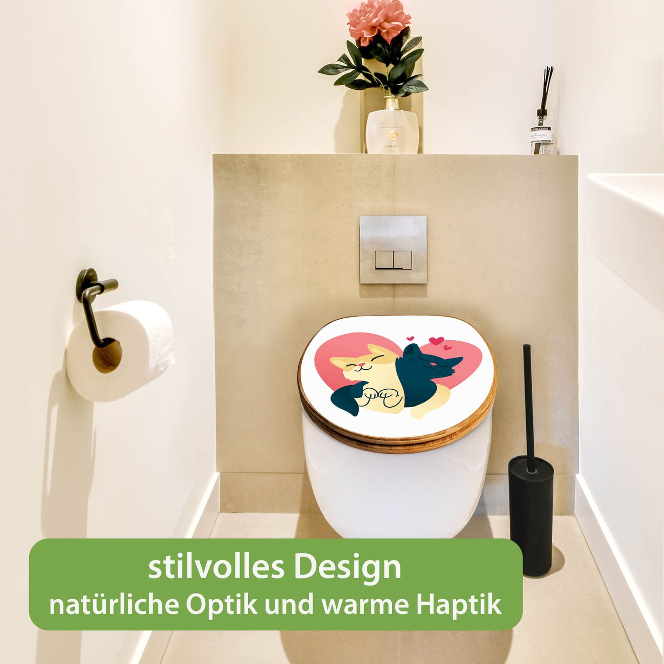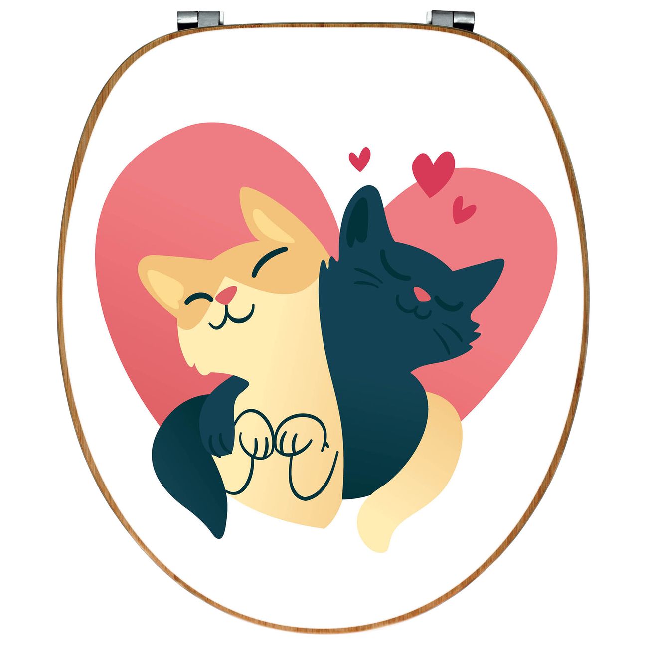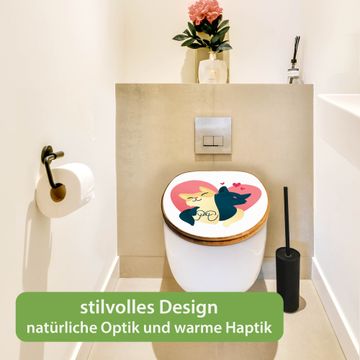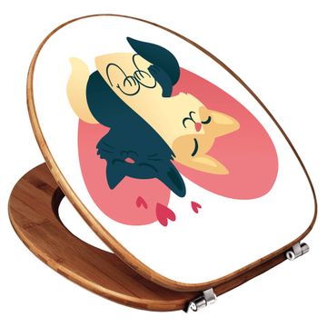 Design WC-Sitz Bambus Holz Motiv Verliebte Katzen 1