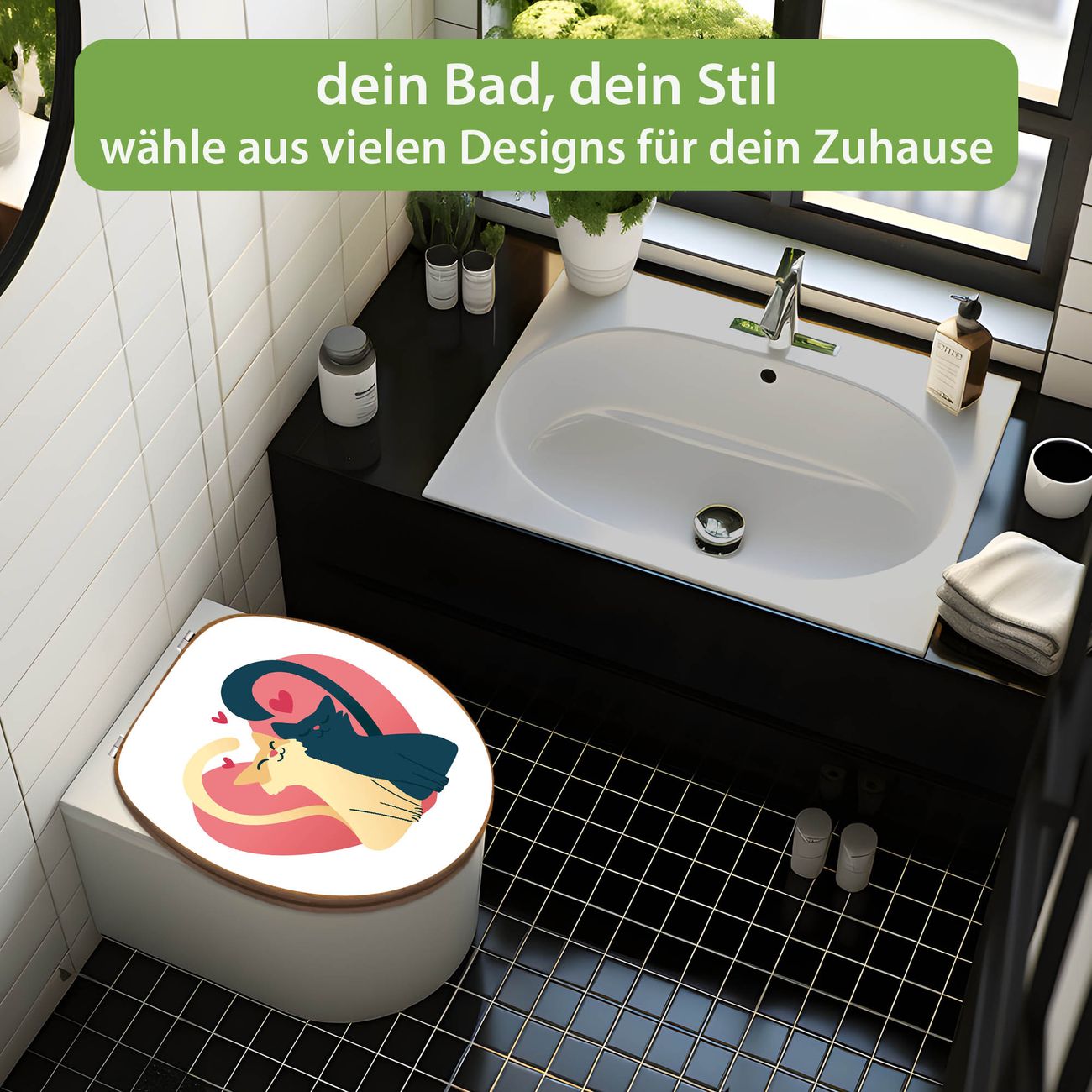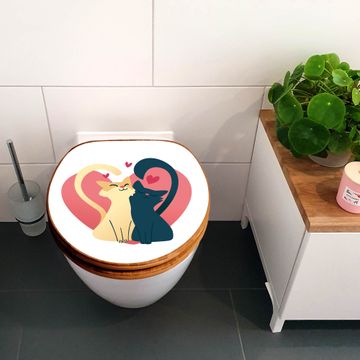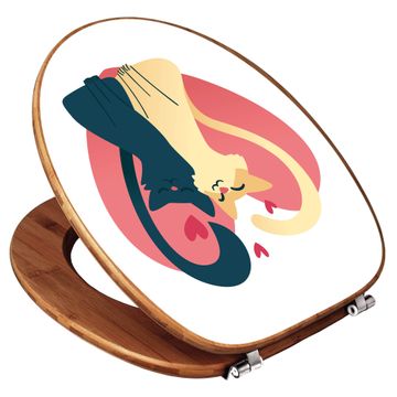 Design WC-Sitz Bambus Holz Motiv Verliebte Katzen 2