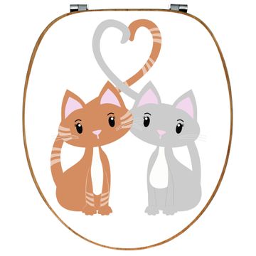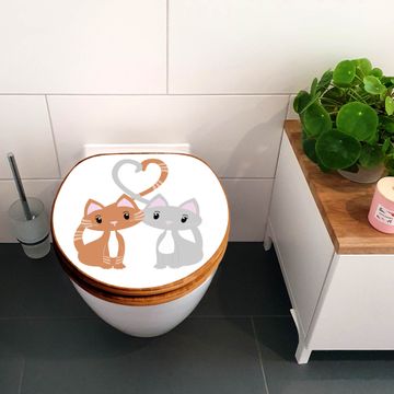 Design WC-Sitz Bambus Holz Motiv Verliebte Katzen 3