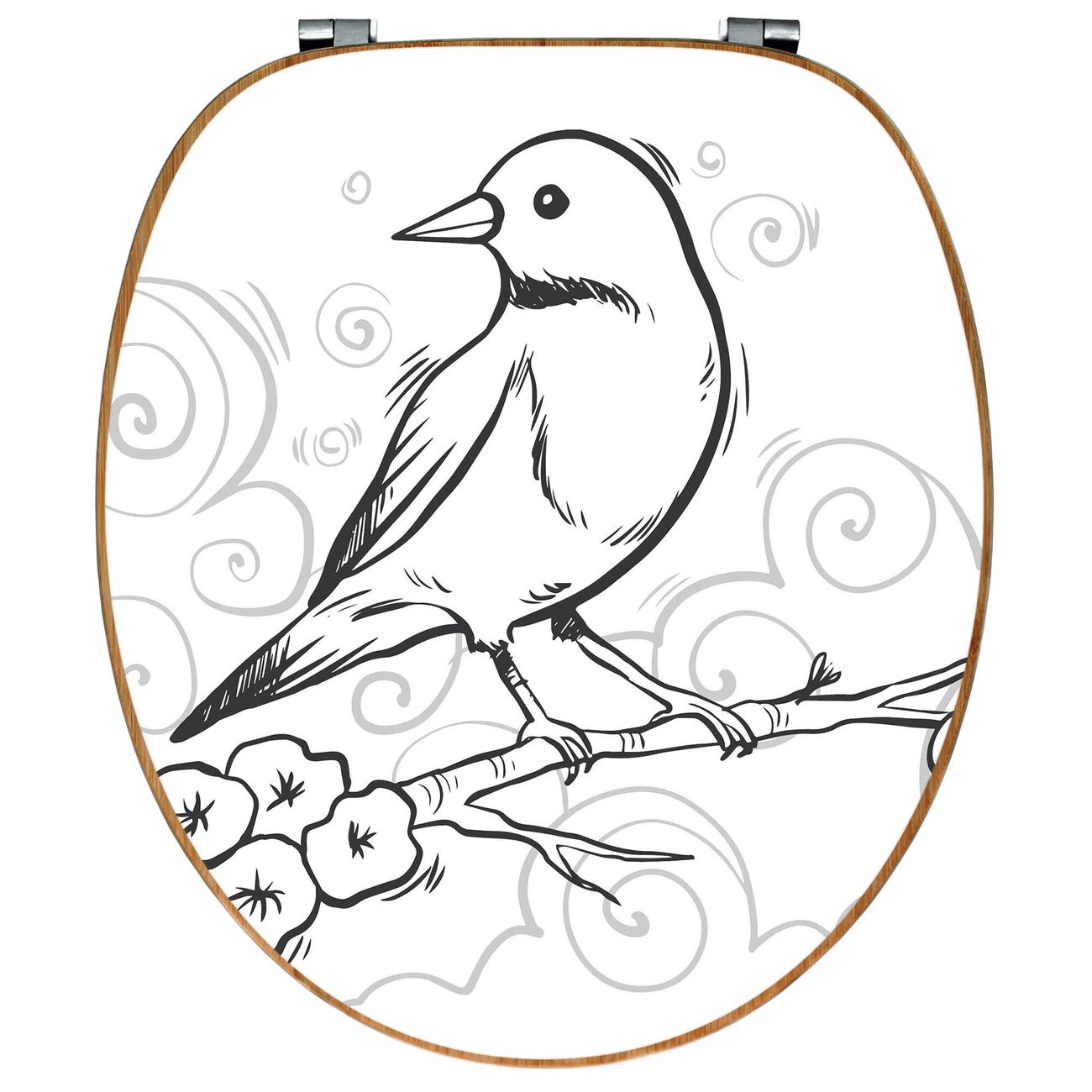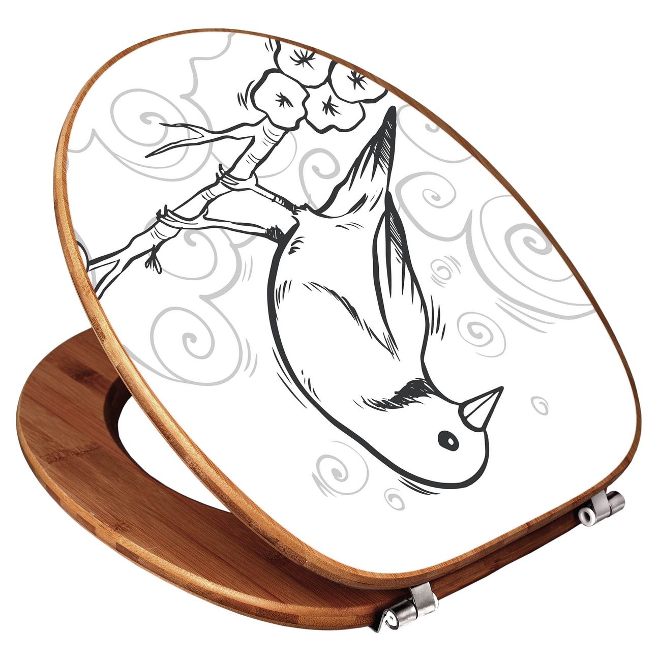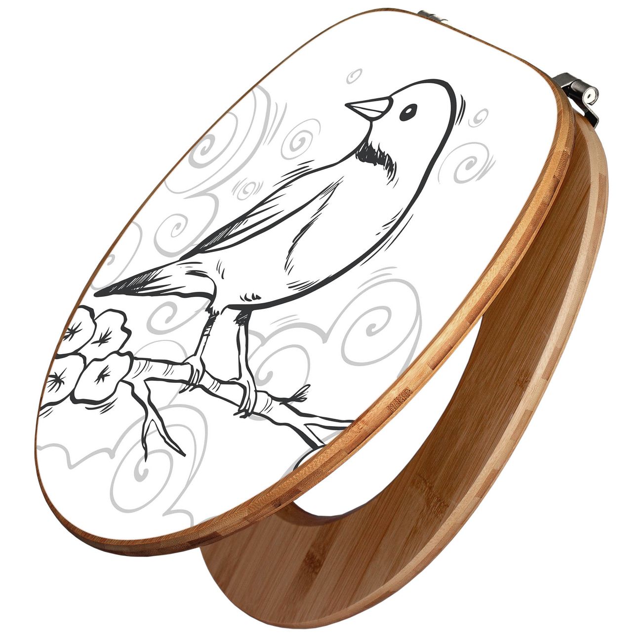 Design WC-Sitz Bambus Holz Motiv Vogel auf Blütenzweig
