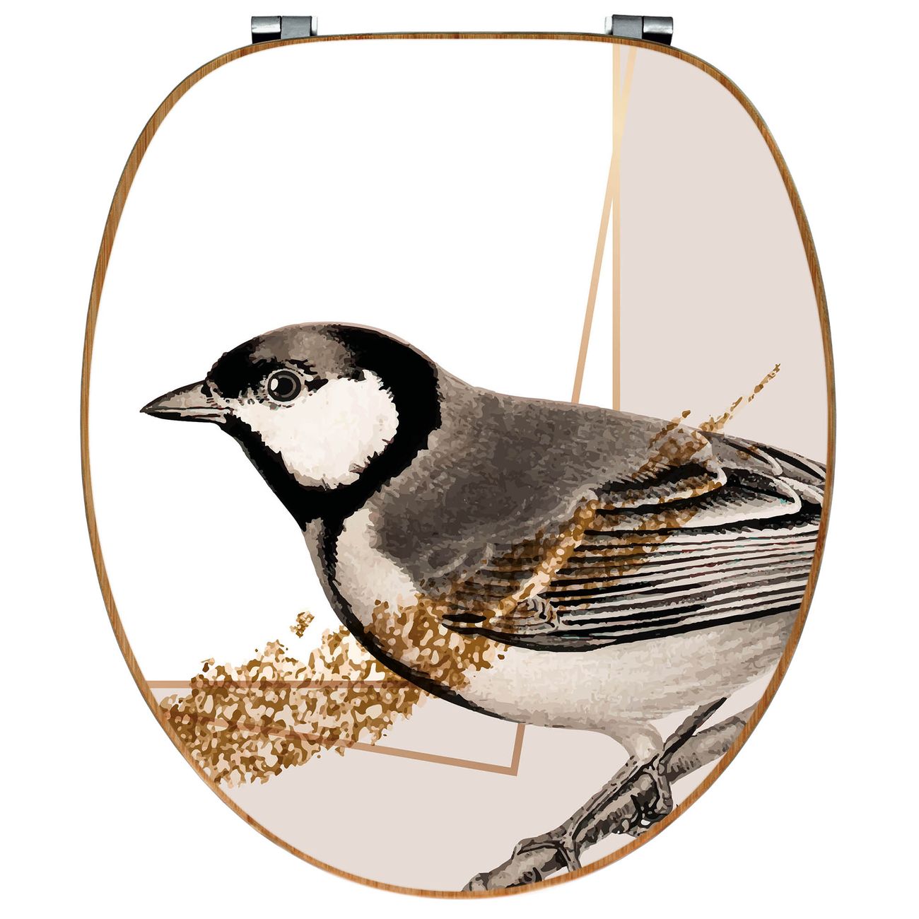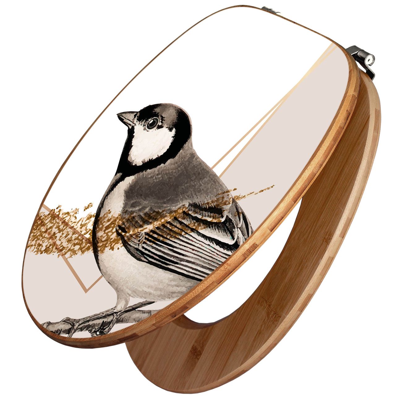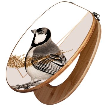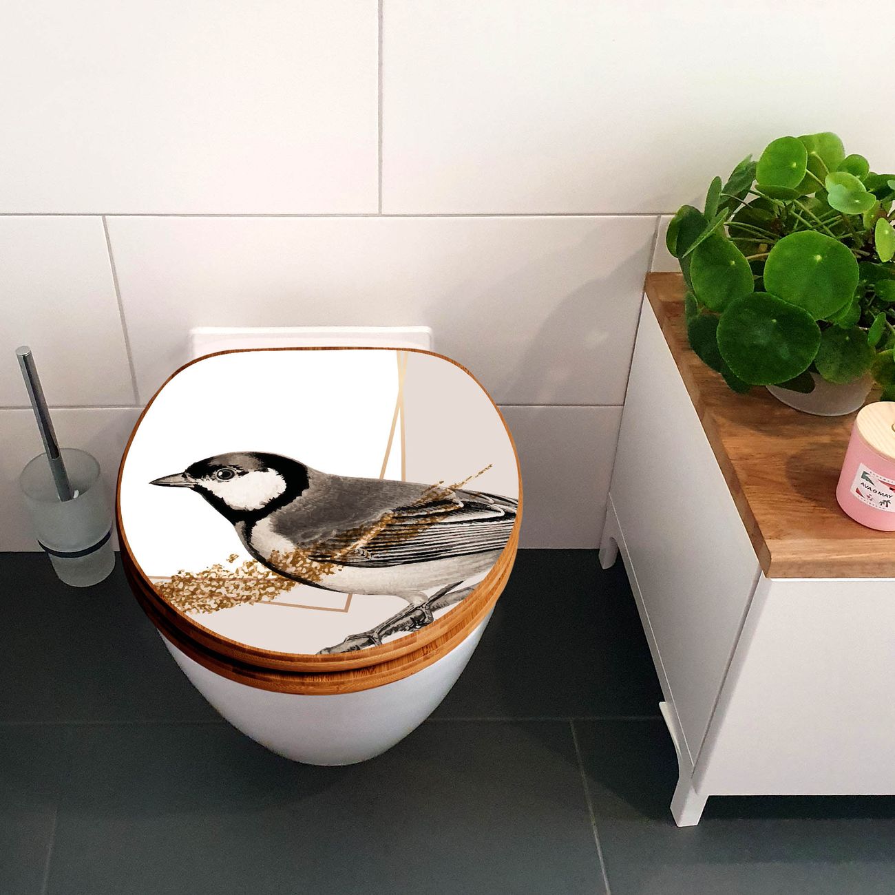 Design WC-Sitz Bambus Holz Motiv Vogel auf Zweig 2