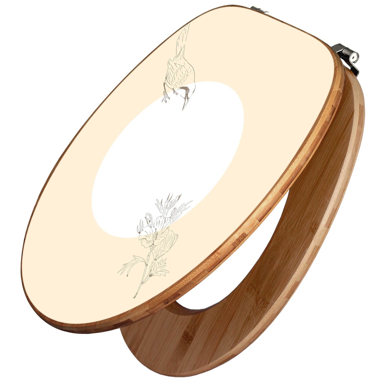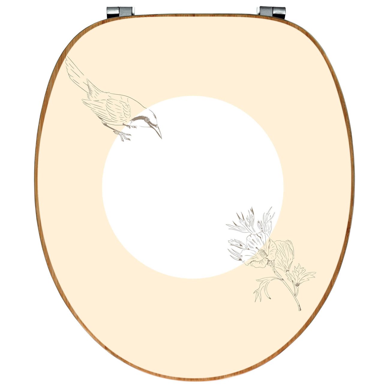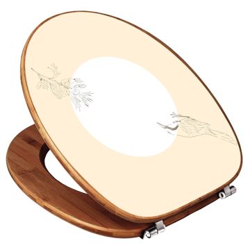 Design WC-Sitz Bambus Holz Motiv Vogel und Blüte