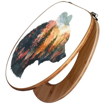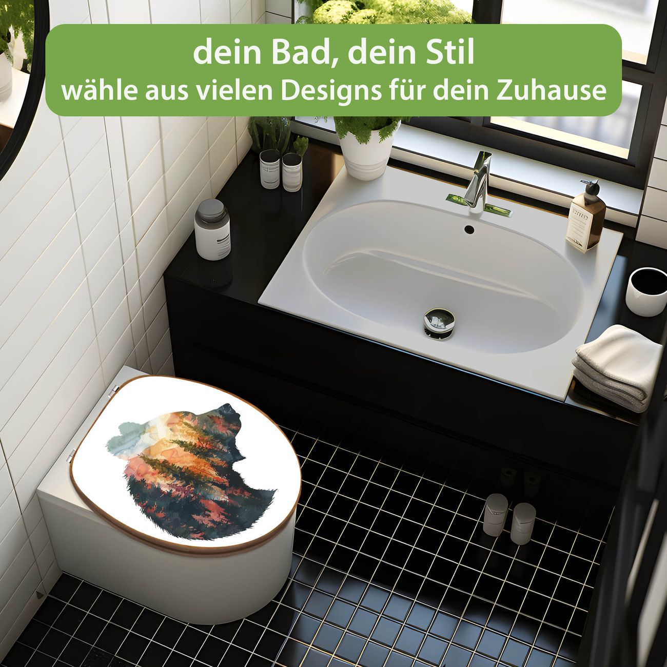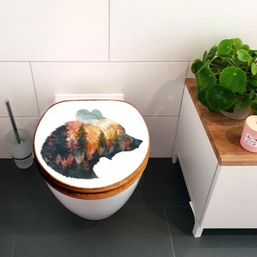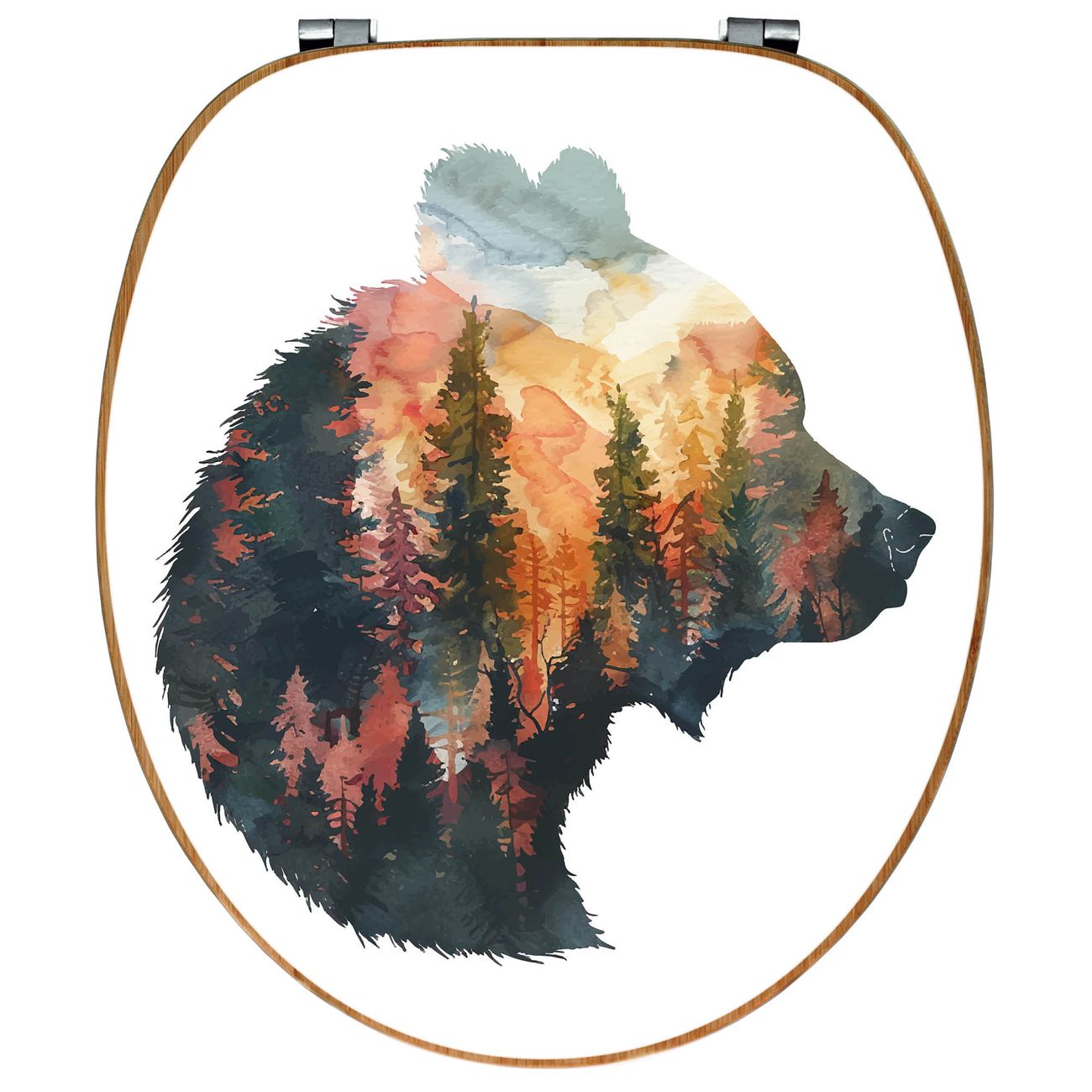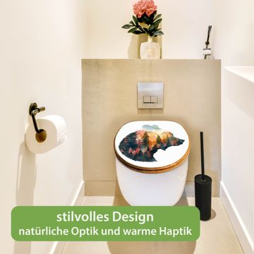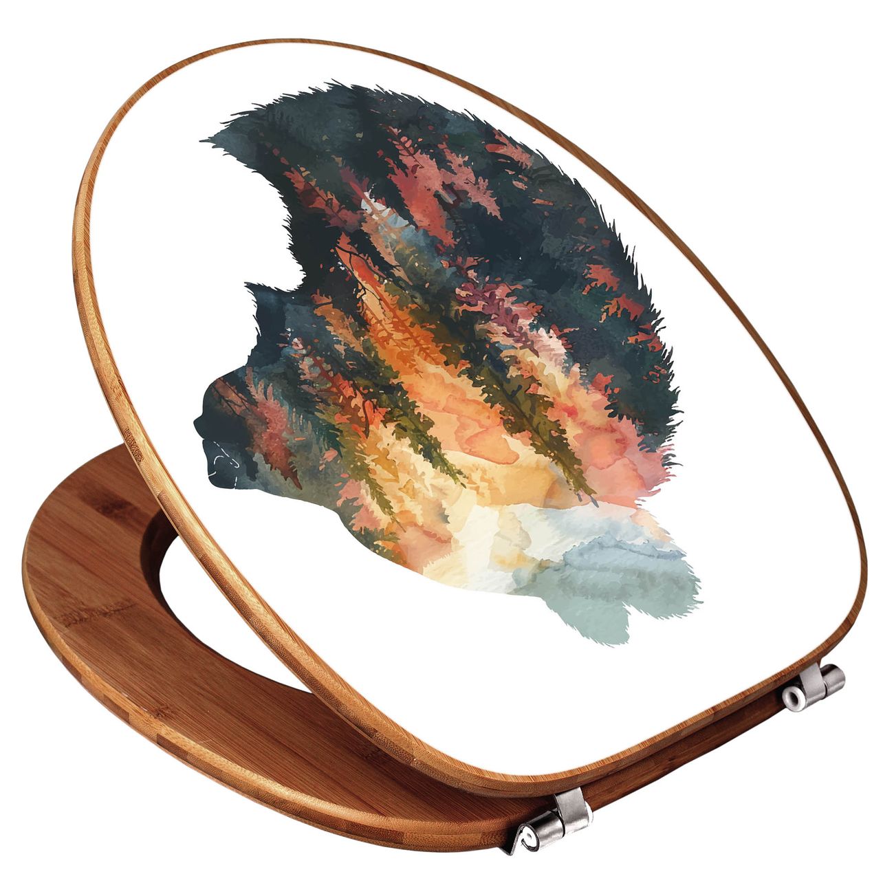 Design WC-Sitz Bambus Holz Motiv Wald und Bär Silhouette