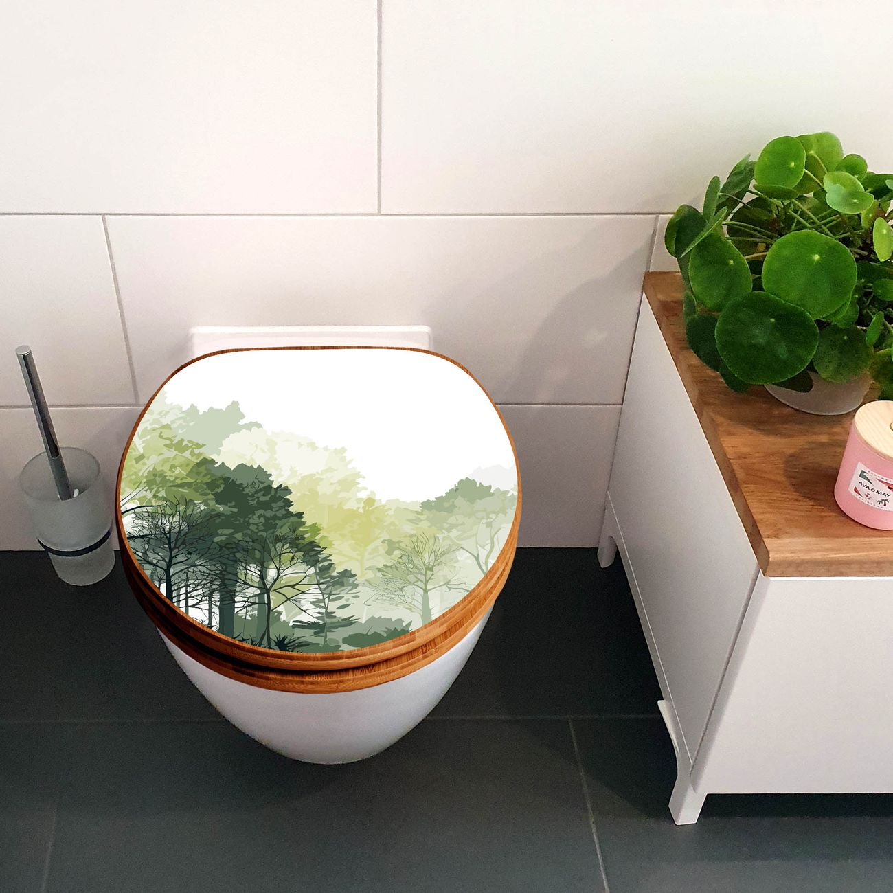 Design WC-Sitz Bambus Holz Motiv Waldszene