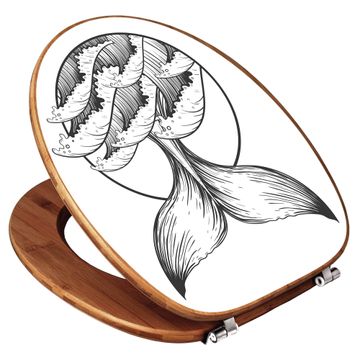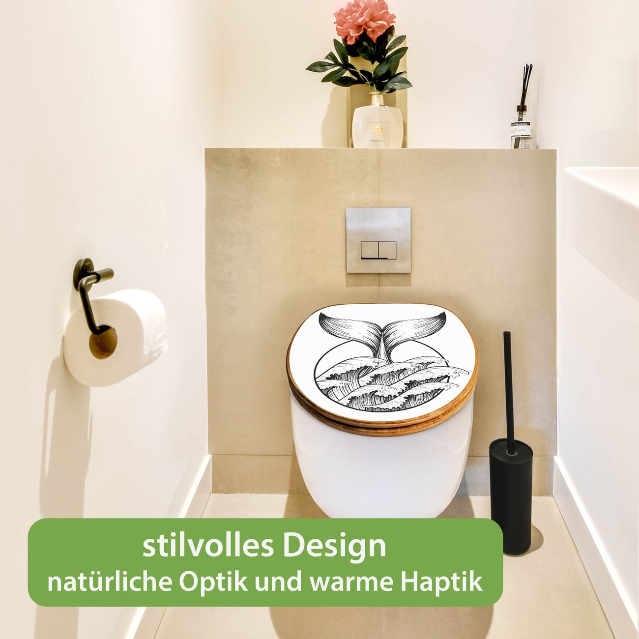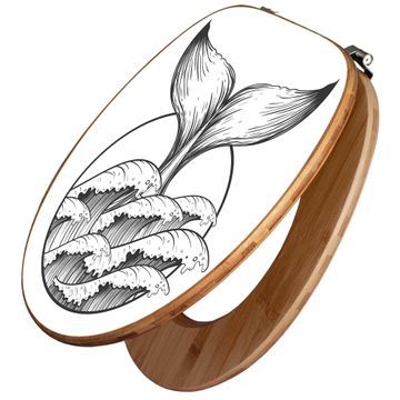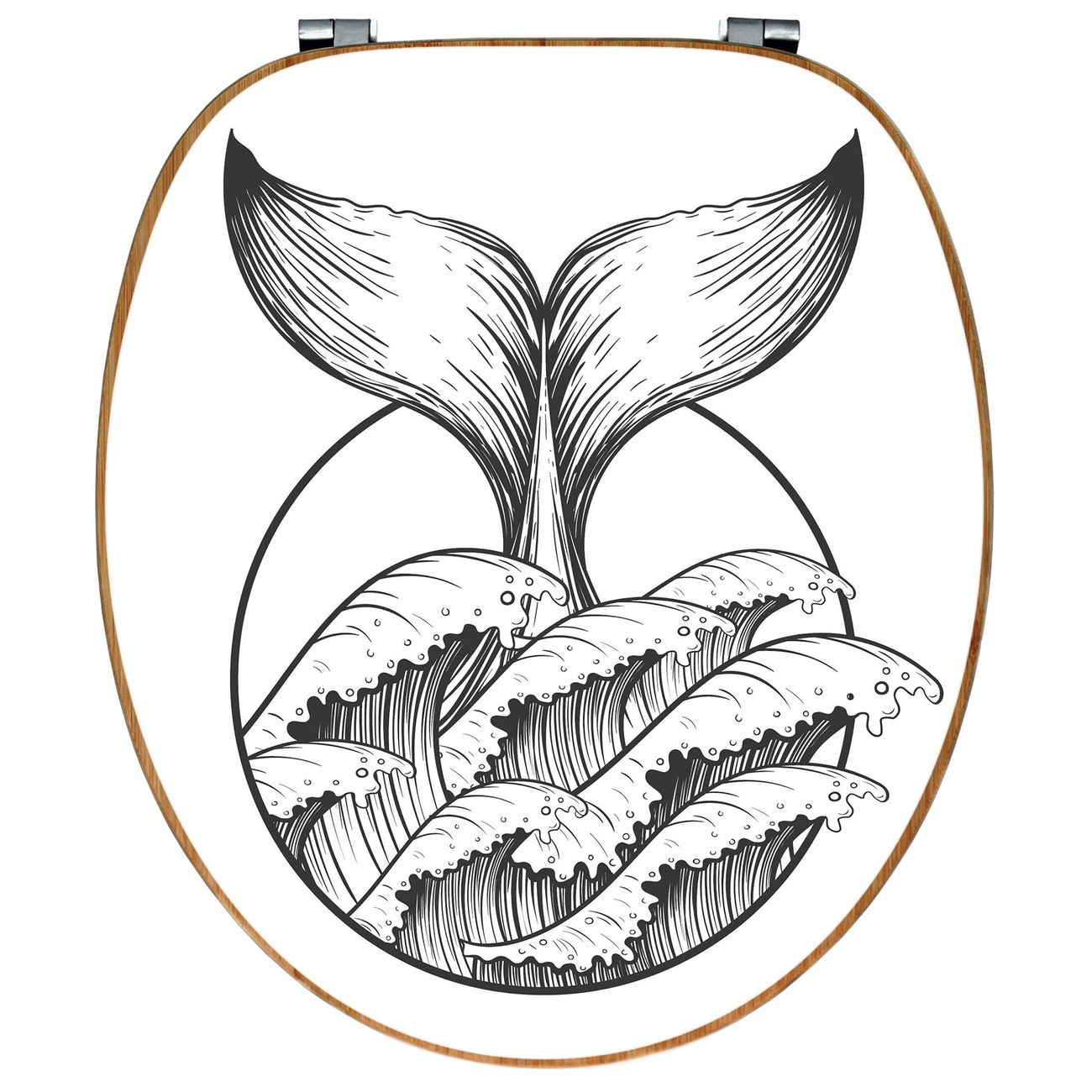 Design WC-Sitz Bambus Holz Motiv Walflosse und Welle 2