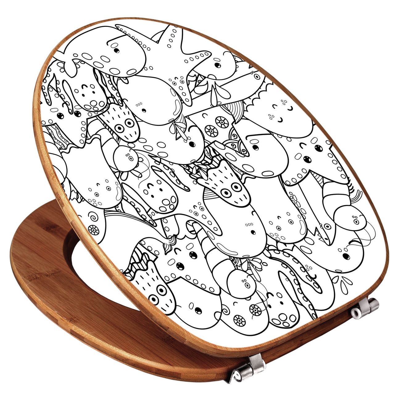 Design WC-Sitz Bambus Holz Motiv Wassermonsterchen 2
