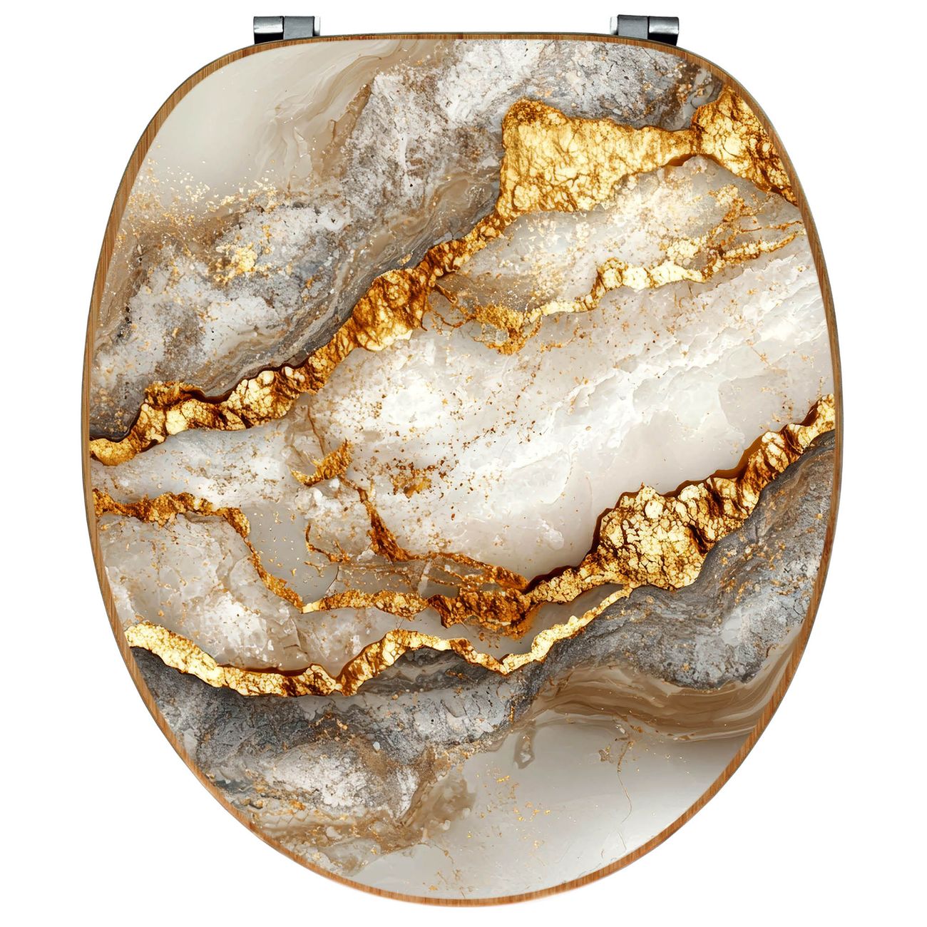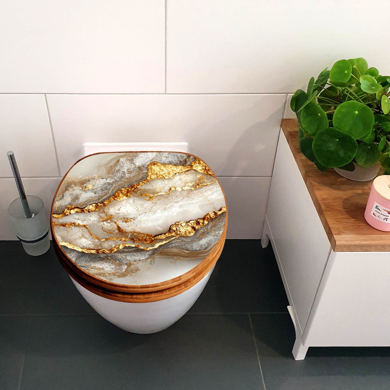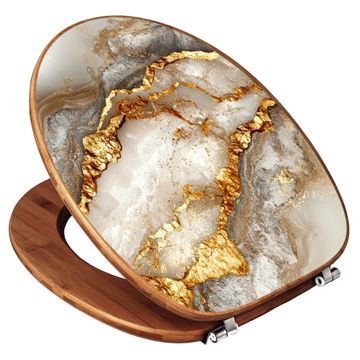 Design WC-Sitz Bambus Holz Motiv Weißer Marmor mit Gold 2