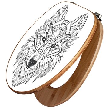 Design WC-Sitz Bambus Holz Motiv Wolf 2