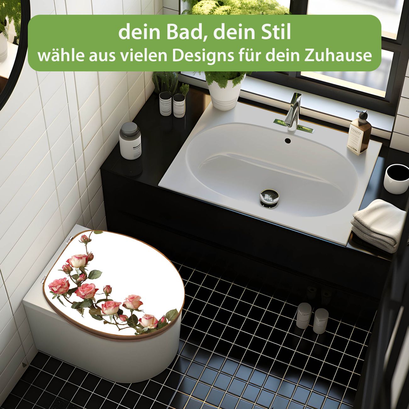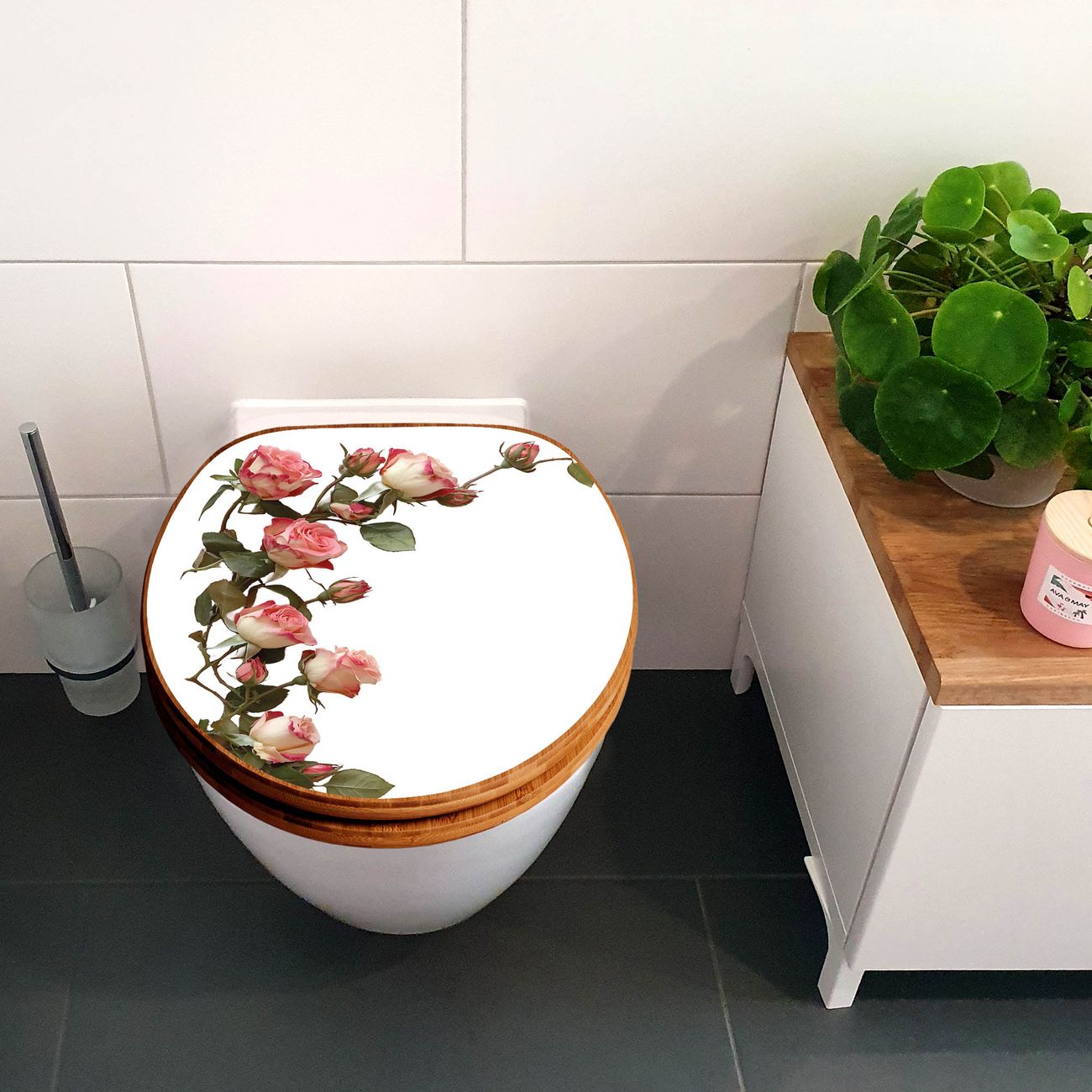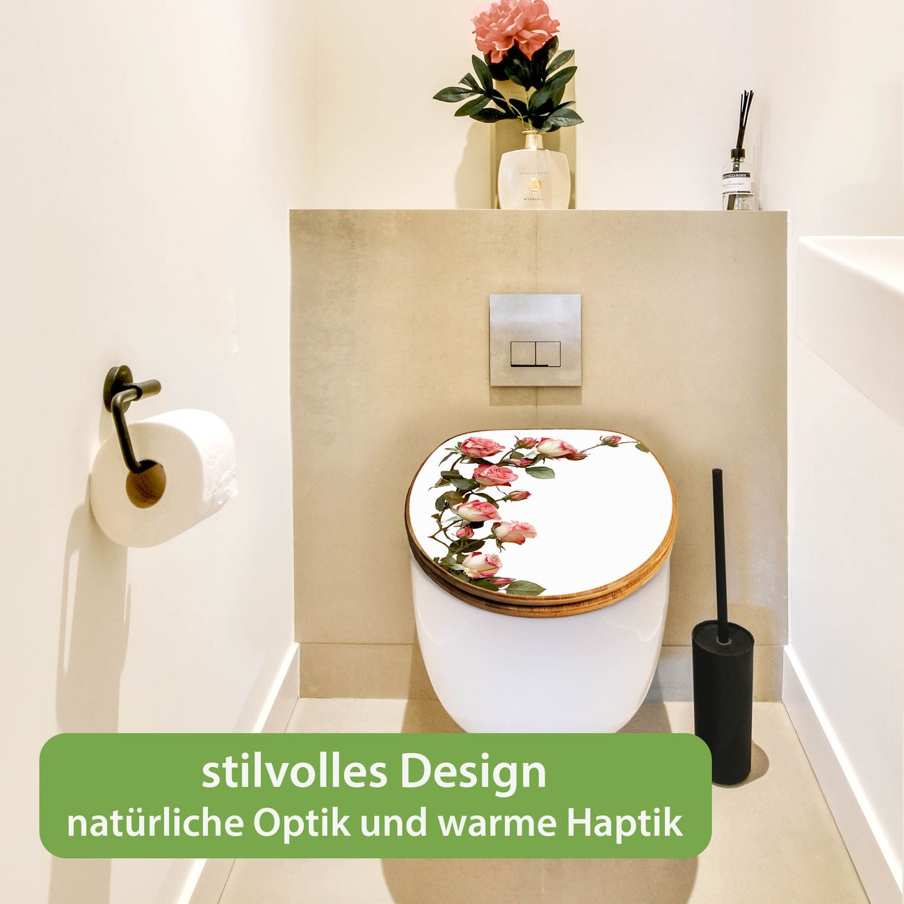 Design WC-Sitz Bambus Holz Motiv Zarte Rosenranken