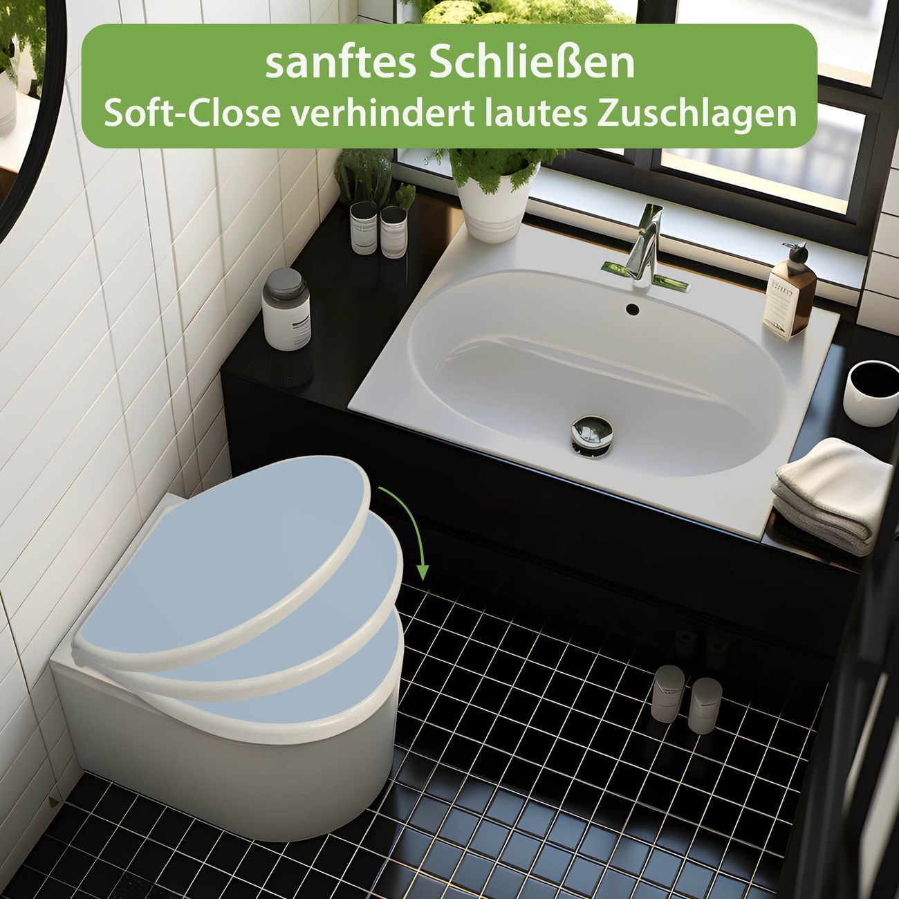 - Material: WC-Sitz und Deckel aus robustem Duroplast