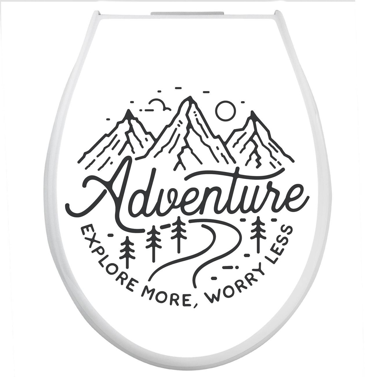 Toilettendeckel weiß mit Absenkautomatik Motiv Abenteuerliche Bergskizze mit Spruch