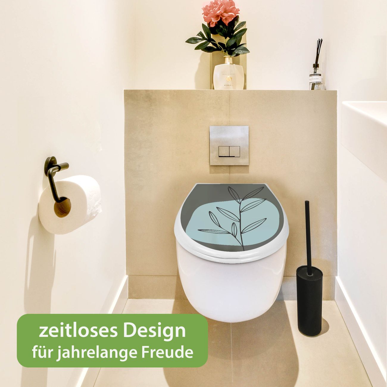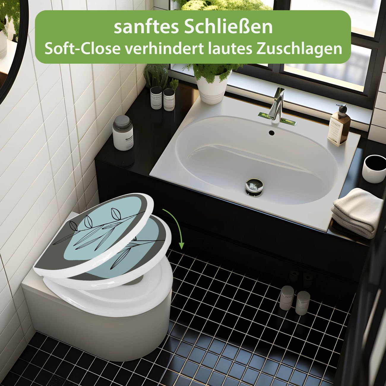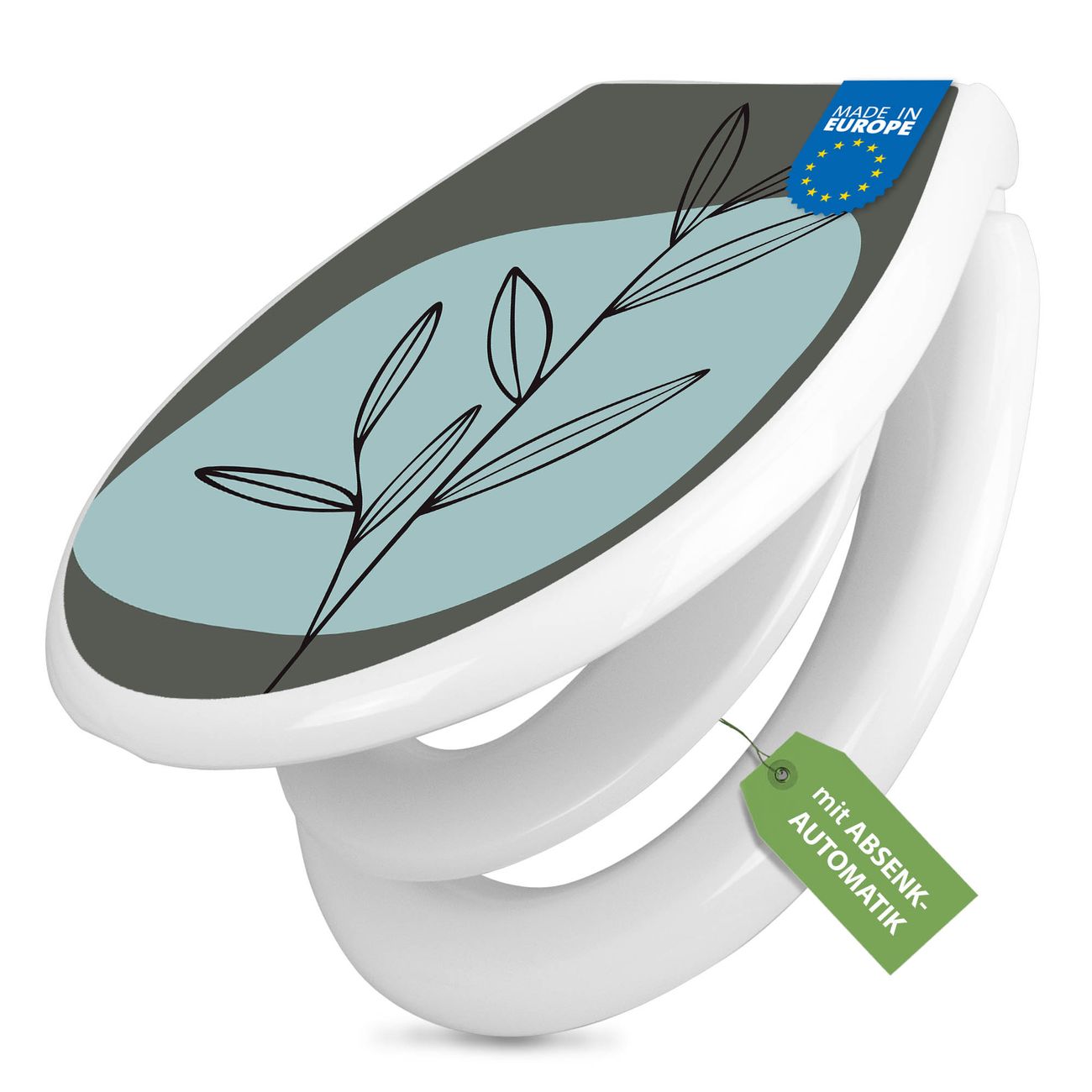 Toilettendeckel weiß mit Absenkautomatik Motiv Abstrakte Botanik