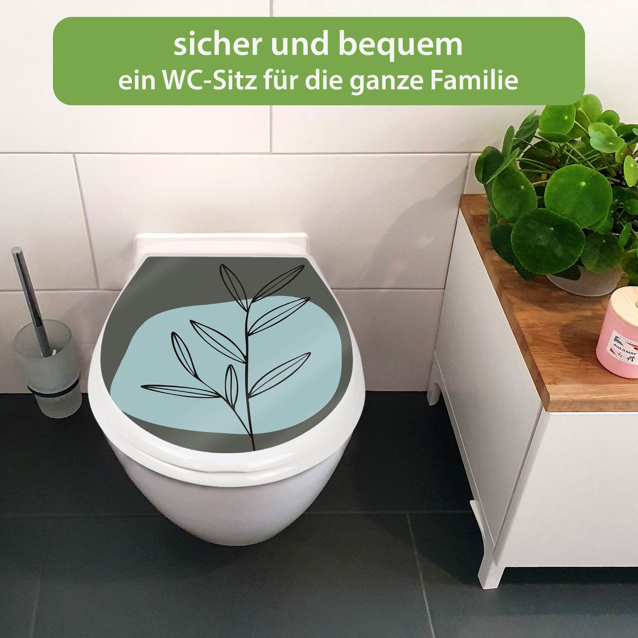 FUNKTION:Mit dem banjado Familien WC Sitz mit Absenkautomatik und dem Motiv Motiv Abstrakte Botanik verbinden Sie Design mit Funktionalität. Sie erhalten den Toilettendeckel in bewährt guter Qualität mit Montagematerial passend auf alle Euro-WC-Becken. Die Gesamtgröße beträgt 37,1cm x 44,9cm x 5cm, die Grundfarbe ist weiß.</p> DESIGN:Der Klodeckel in weiß mit Motiv Motiv Abstrakte Botanik hat eine ansprechende Optik, eine besondere Form und ist sehr stabil. Das Motiv besteht aus einer farbbrillianten Motivfolie, die durch ein Schutzlaminat zusätzlich vor Kratzern schützt. Der integrierte Kindersitz fügt sich harmonisch ein. DETAILS:Der Toilettensitz mit Soft Close besteht aus hochwertigem Polypropylen, ist geruchlos, ungiftig und kann mit handelsüblicher Seife gereinigt werden. Die Montage kann von von oben oder von unten erfolgen und ist kinderleicht. NUTZEN:Mit Hilfe der detaillierten Aufbauanleitung ermöglichen wir eine schnelle und unkomplizierte Montage. Die banjado Klobrille ist universell geeignet für alle Euro-WC-Schüsseln. Der Kindersitz kann unkompliziert entfernt werden. BANJADO:Ihr WC-Deckel wird in Sachsen in einer kleinen Manufaktur von Hand veredelt. Die Motivfolie ist lösungsmittelfrei und schutzlaminiert für einen langen Halt. Wir wünschen viel Freude bei der Auswahl eines schönen Motivs.