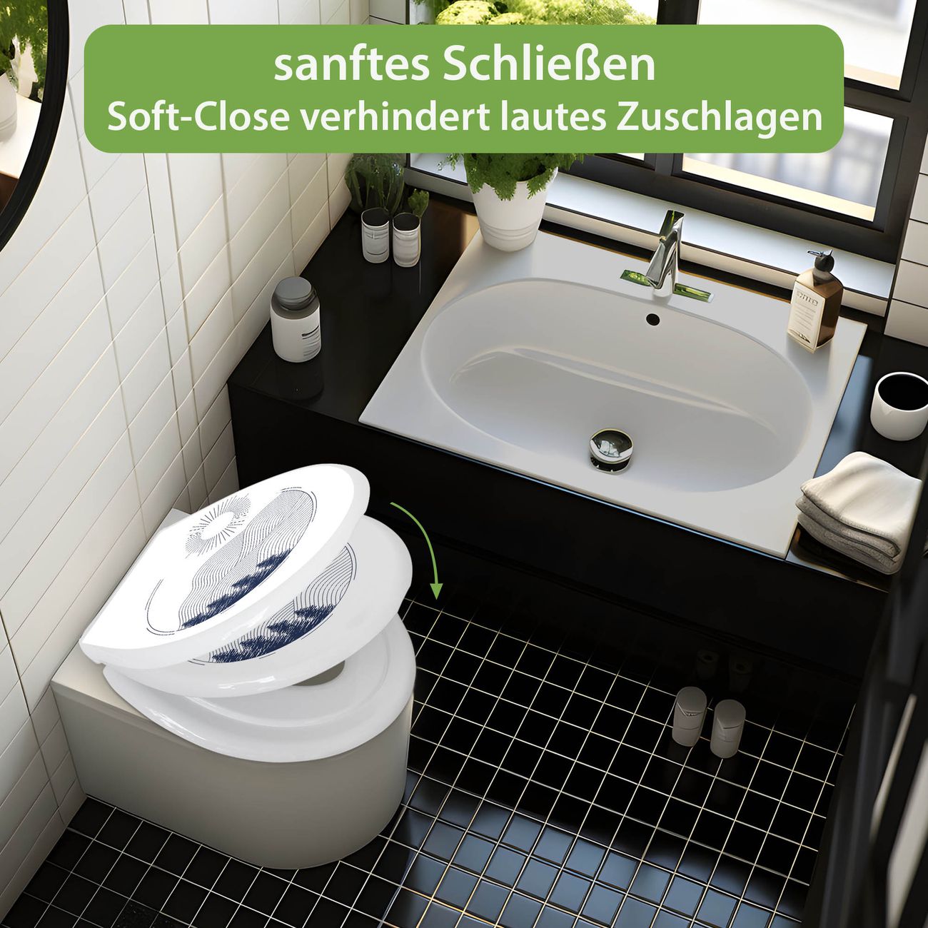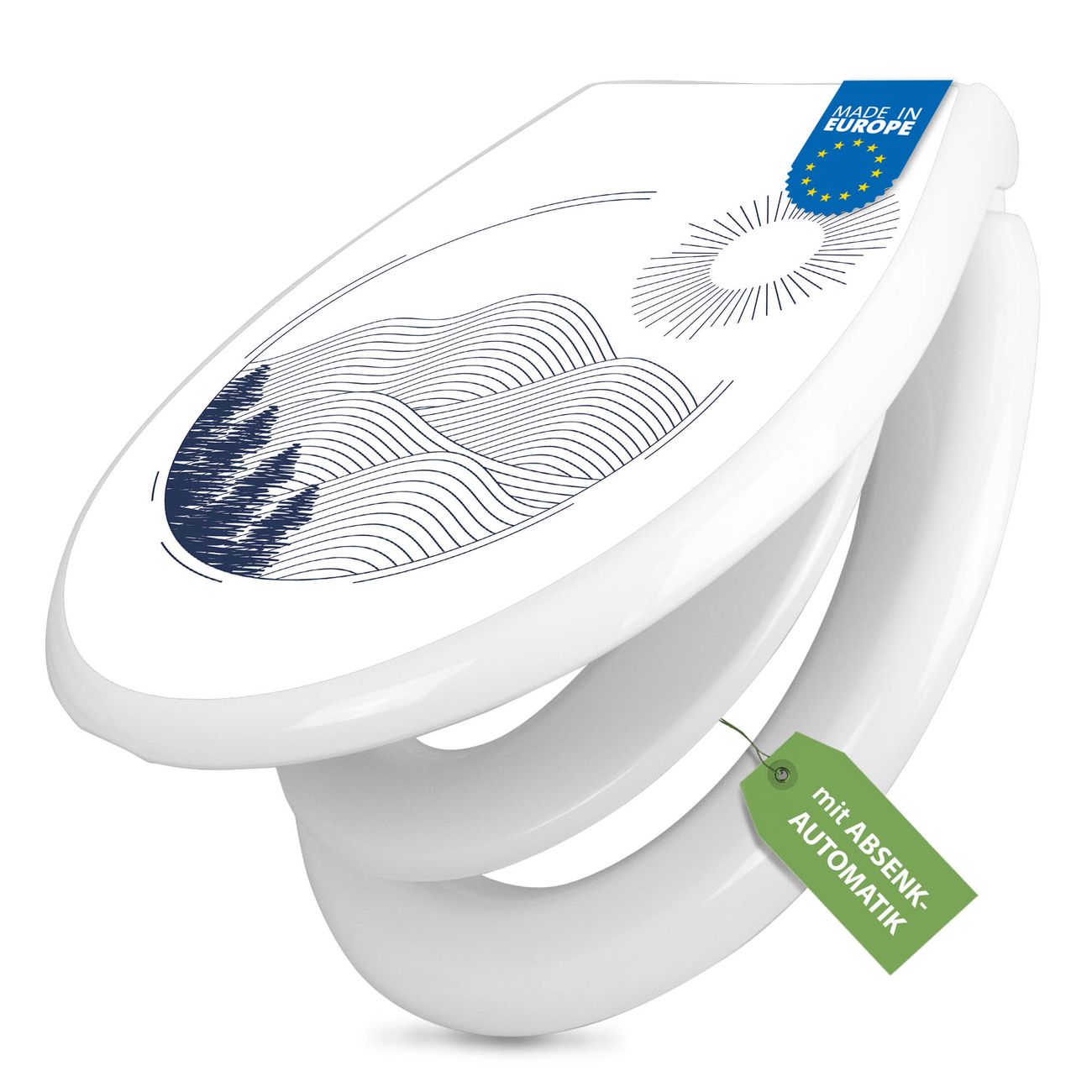 Toilettendeckel weiß mit Absenkautomatik Motiv Abstrakte Landschaft