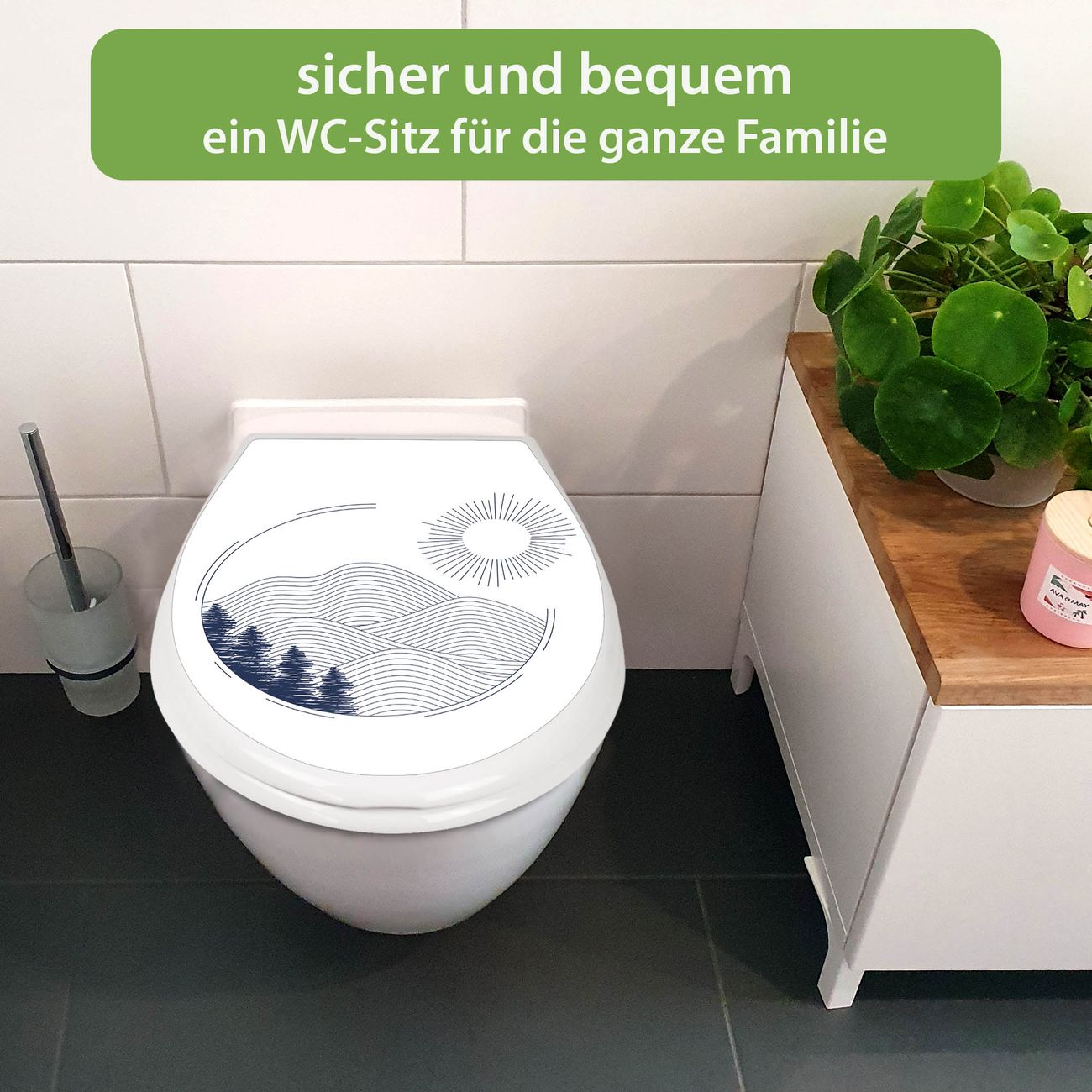FUNKTION:Mit dem banjado Familien WC Sitz mit Absenkautomatik und dem Motiv Motiv Abstrakte Landschaft verbinden Sie Design mit Funktionalität. Sie erhalten den Toilettendeckel in bewährt guter Qualität mit Montagematerial passend auf alle Euro-WC-Becken. Die Gesamtgröße beträgt 37,1cm x 44,9cm x 5cm, die Grundfarbe ist weiß.</p> DESIGN:Der Klodeckel in weiß mit Motiv Motiv Abstrakte Landschaft hat eine ansprechende Optik, eine besondere Form und ist sehr stabil. Das Motiv besteht aus einer farbbrillianten Motivfolie, die durch ein Schutzlaminat zusätzlich vor Kratzern schützt. Der integrierte Kindersitz fügt sich harmonisch ein. DETAILS:Der Toilettensitz mit Soft Close besteht aus hochwertigem Polypropylen, ist geruchlos, ungiftig und kann mit handelsüblicher Seife gereinigt werden. Die Montage kann von von oben oder von unten erfolgen und ist kinderleicht. NUTZEN:Mit Hilfe der detaillierten Aufbauanleitung ermöglichen wir eine schnelle und unkomplizierte Montage. Die banjado Klobrille ist universell geeignet für alle Euro-WC-Schüsseln. Der Kindersitz kann unkompliziert entfernt werden. BANJADO:Ihr WC-Deckel wird in Sachsen in einer kleinen Manufaktur von Hand veredelt. Die Motivfolie ist lösungsmittelfrei und schutzlaminiert für einen langen Halt. Wir wünschen viel Freude bei der Auswahl eines schönen Motivs.