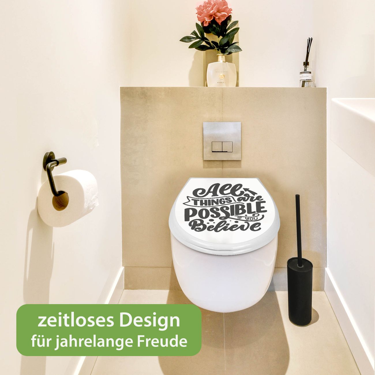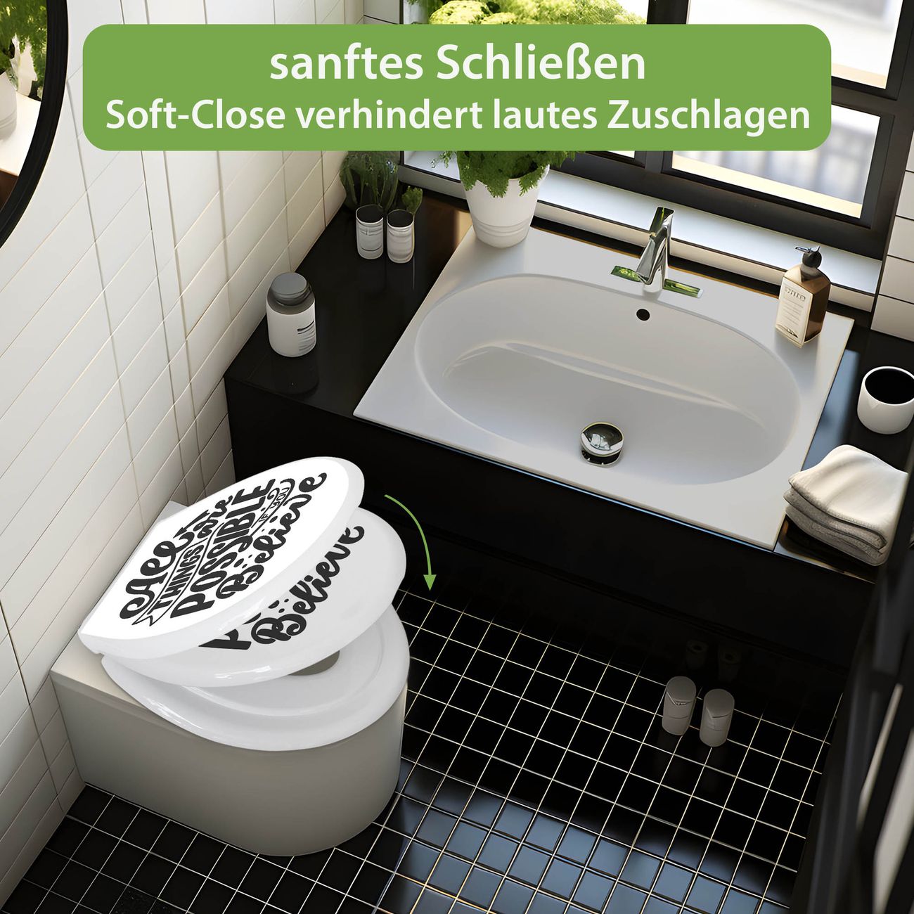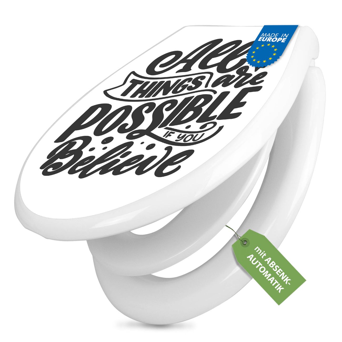 Toilettendeckel weiß mit Absenkautomatik Motiv All Things are possible 2