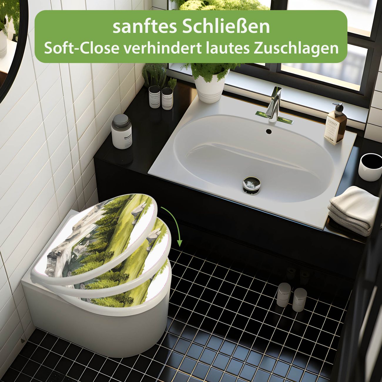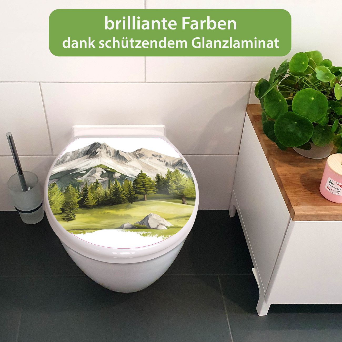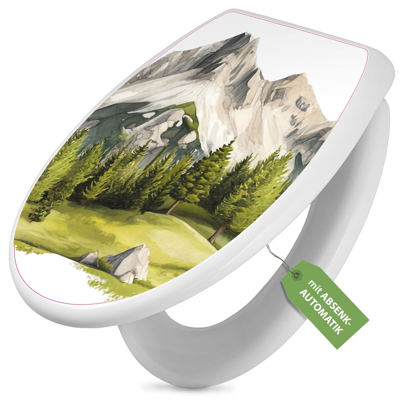 Toilettendeckel weiß mit Absenkautomatik Motiv Alpine Landschaft