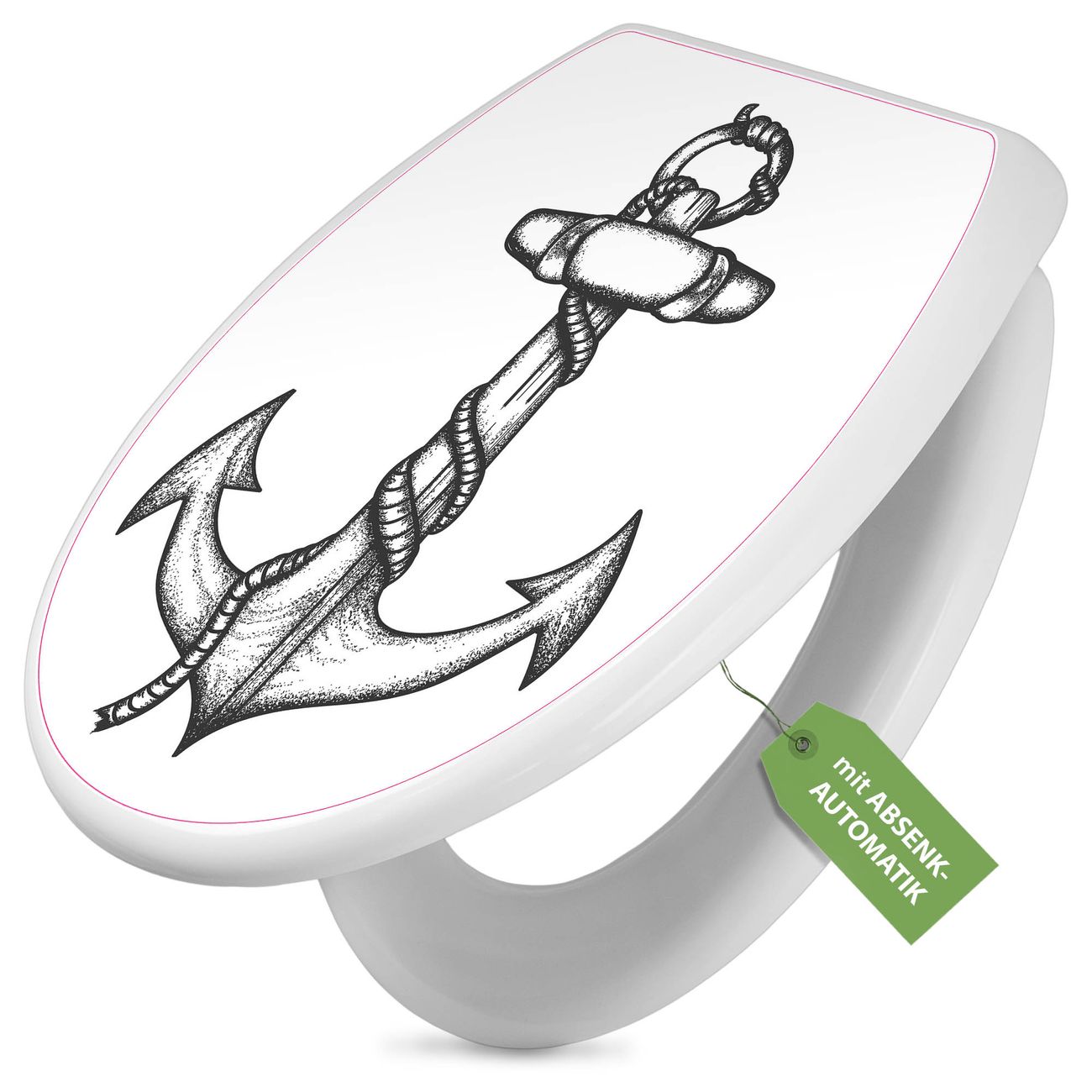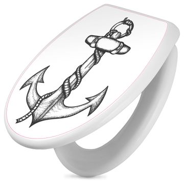 Toilettendeckel weiß mit Absenkautomatik Motiv Anker 2