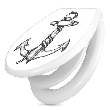 Toilettendeckel weiß mit Absenkautomatik Motiv Anker 2