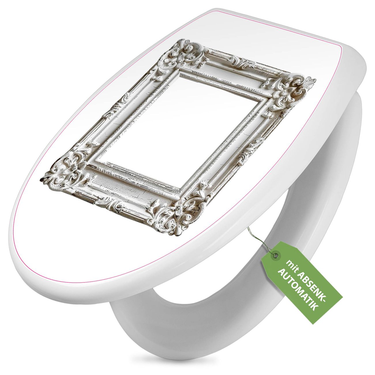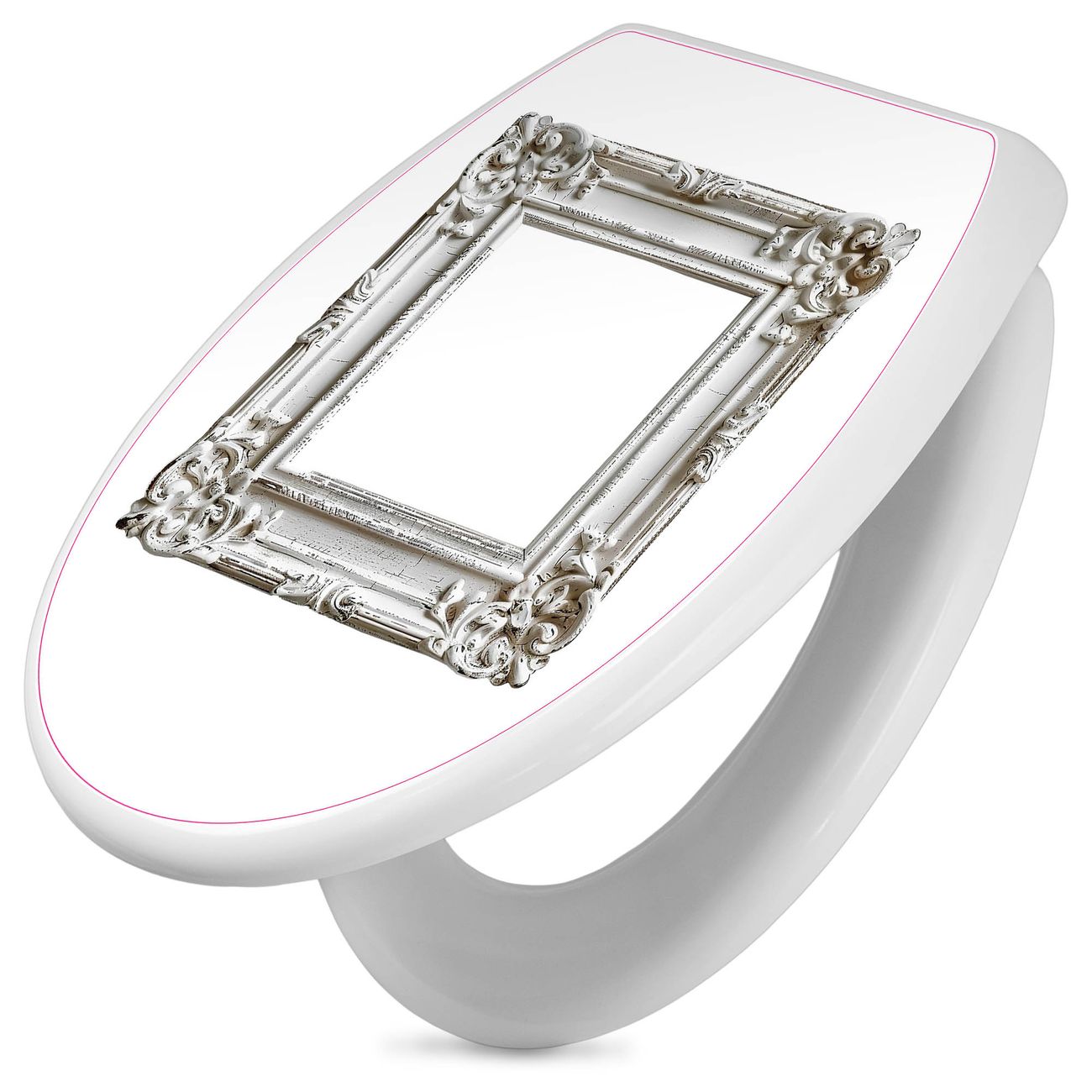 Toilettendeckel weiß mit Absenkautomatik Motiv Antiker Bilderrahmen