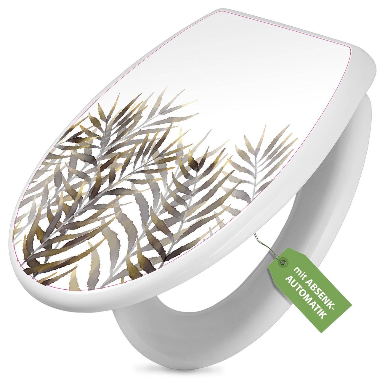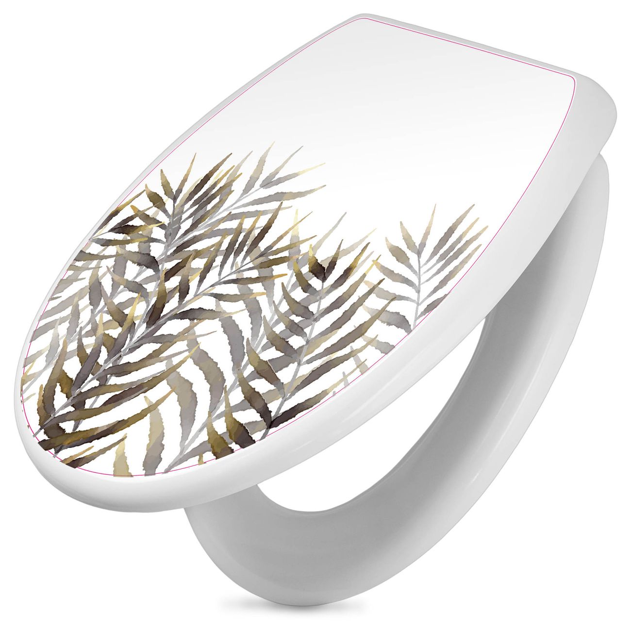 Toilettendeckel weiß mit Absenkautomatik Motiv Aquarell Palmblätter
