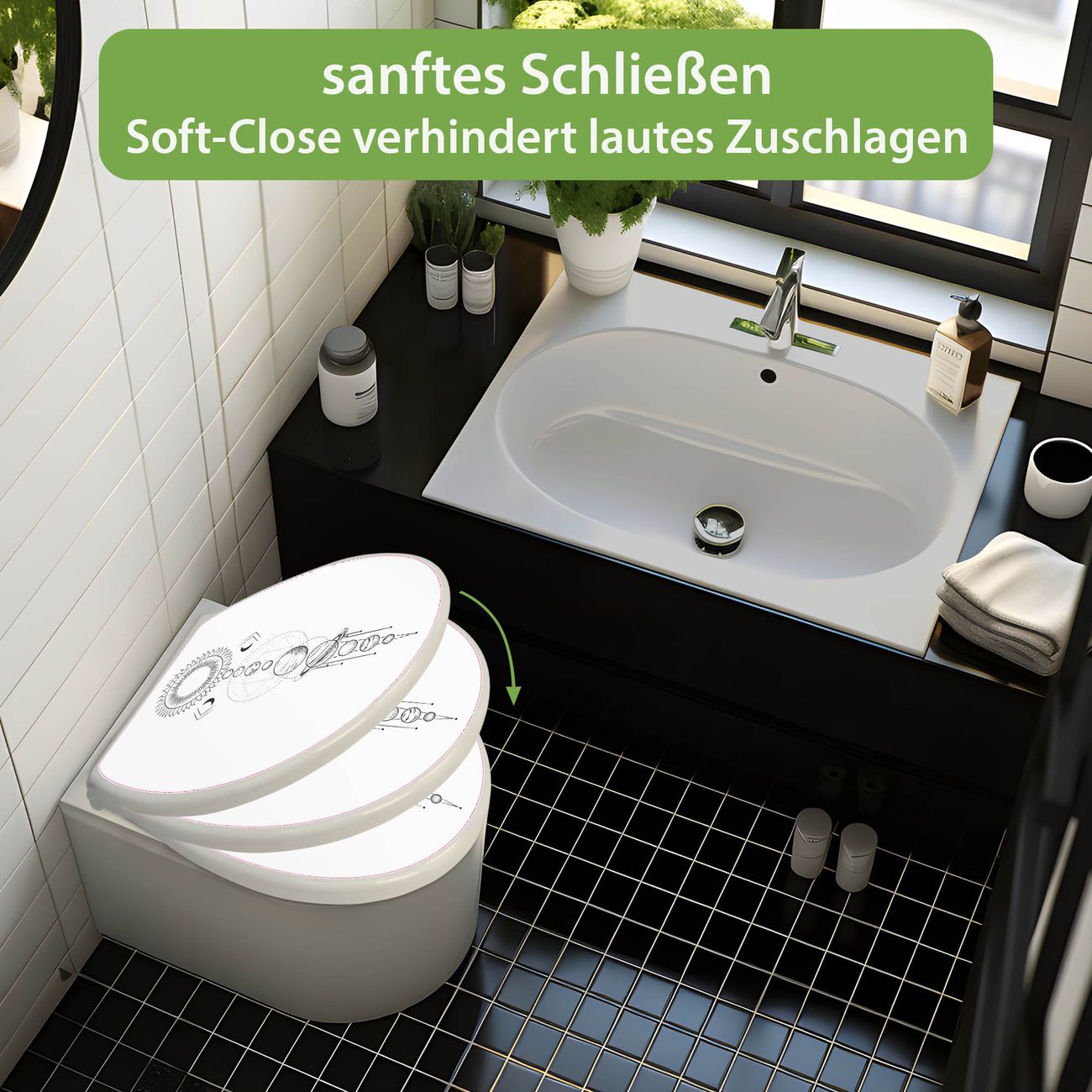 - Material: WC-Sitz und Deckel aus robustem Duroplast
