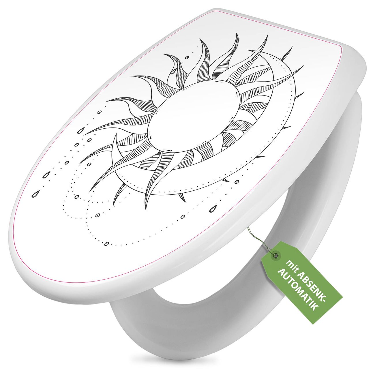 FUNKTION: Mit dem banjado Toilettendeckel mit Absenkautomatik verbinden Sie Design mit Funktionalität. Sie erhalten den WC Sitz in bewährt guter Qualität mit Edelstahl Scharnieren und Montagematerial. DESIGN: Der Klodeckel hat eine ansprechende Optik, eine besondere Form und ist sehr stabil. Das Motiv besteht aus einer farbbrillianten Motivfolie, die durch ein Schutzlaminat zusätzlich vor Kratzern schützt. DETAILS: Der Toilettensitz besteht aus Duroplast, die Scharniere sind aus hochwertigem Edelstahl, Materialien die Ihnen eine leichte und hygienische Reinigung ermöglichen. Die Gesamtgröße beträgt 37,3cm x 45cm x 5cm, die Grundfarbe ist weiß. NUTZEN: Mit Hilfe der detaillierten Aufbauanleitung ermöglichen wir eine schnelle und unkomplizierte Montage. Die banjado Klobrille ist universell geeignet für alle gängigen WC Schüsseln. Der Lochabstand zur Befestigung kann variable eingestellt werden. BANJADO: Ihr WC-Deckel wird in Sachsen in einer kleinen Manufaktur von Hand veredelt. Die Motivfolie ist lösungsmittelfrei und schutzlaminiert, für einen langen Halt. Wir wünschen viel Freude bei der Auswahl eines schönen Motivs.