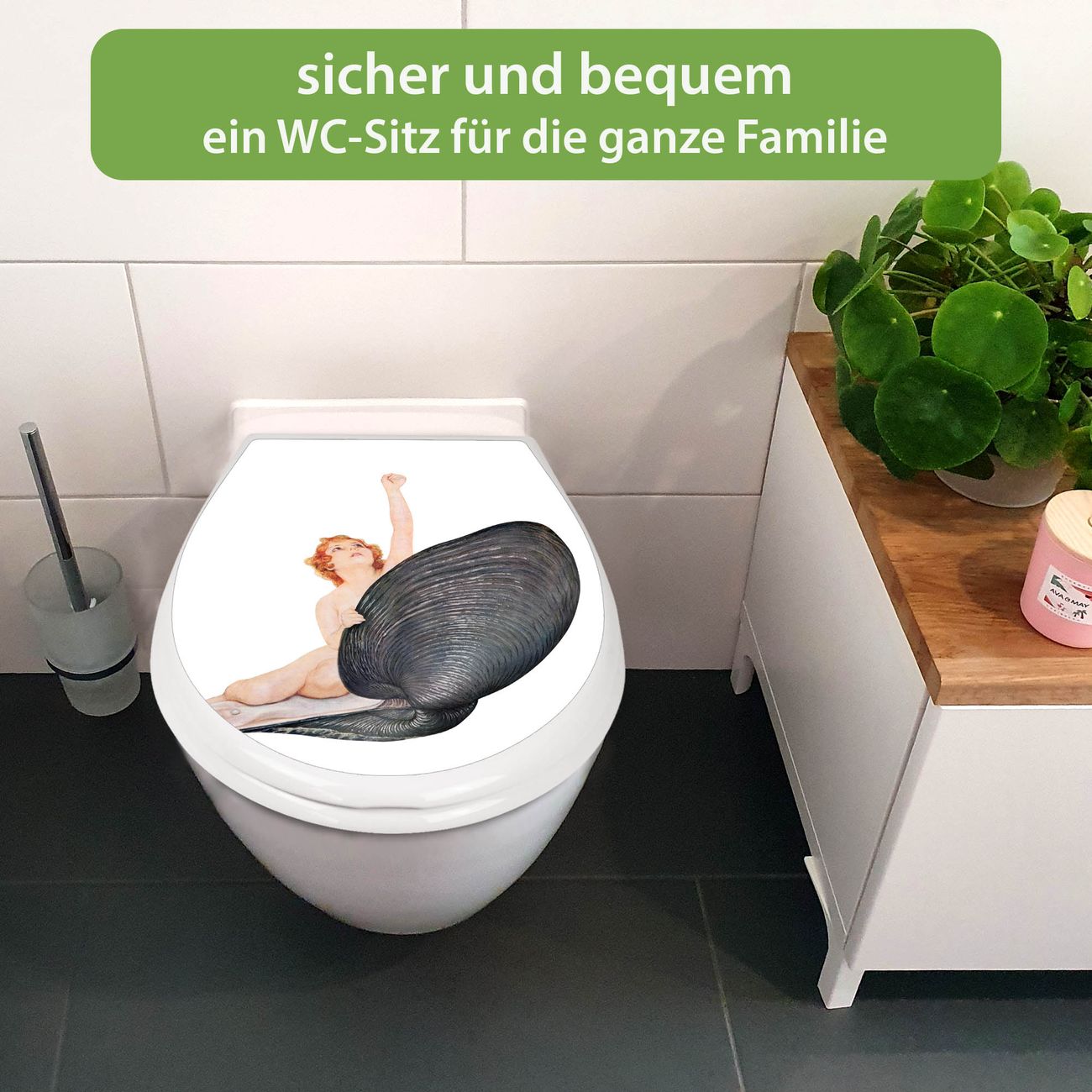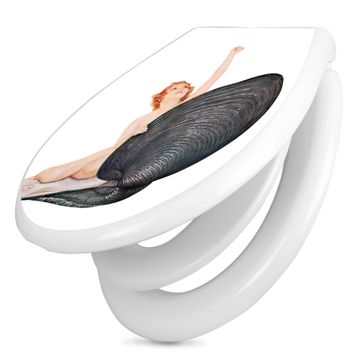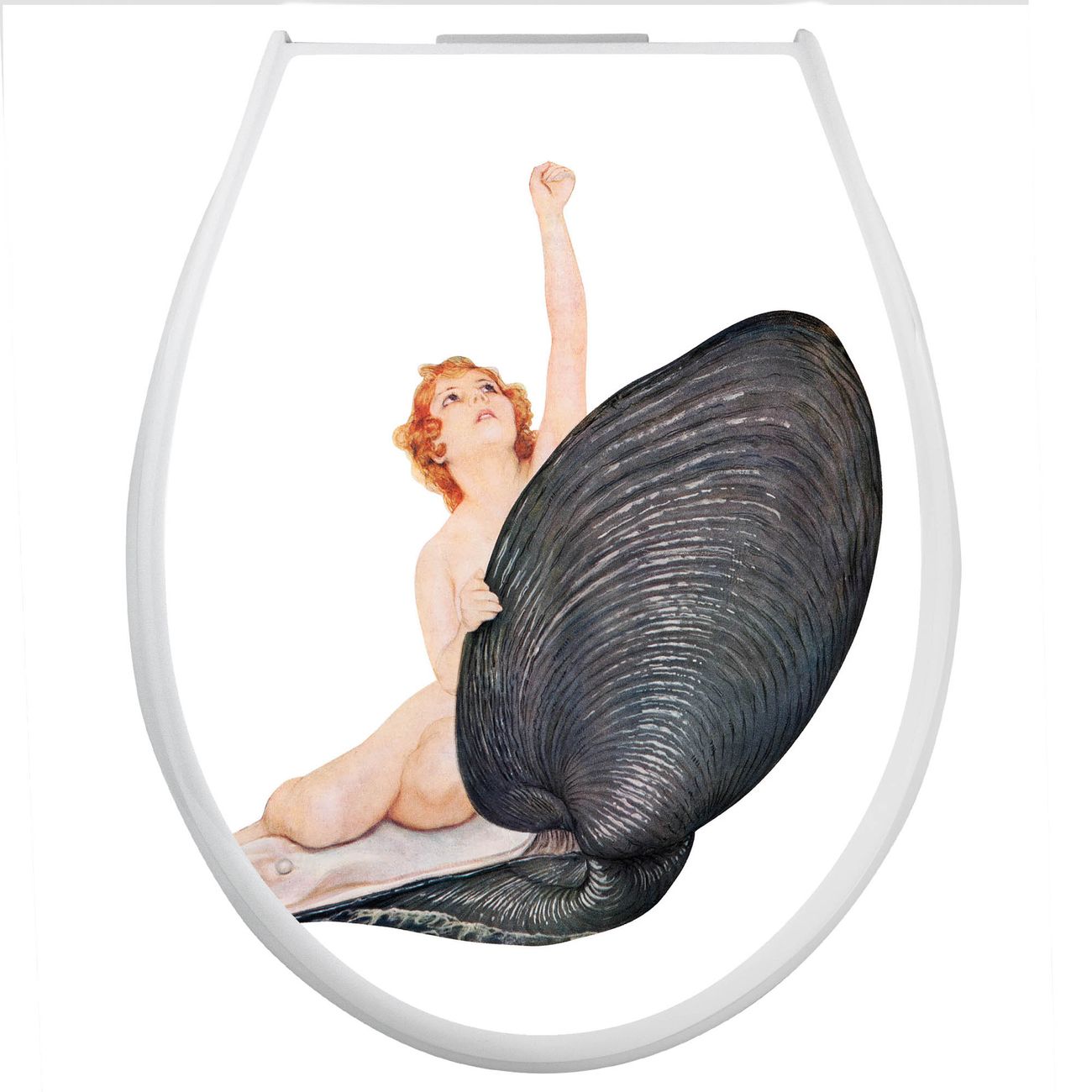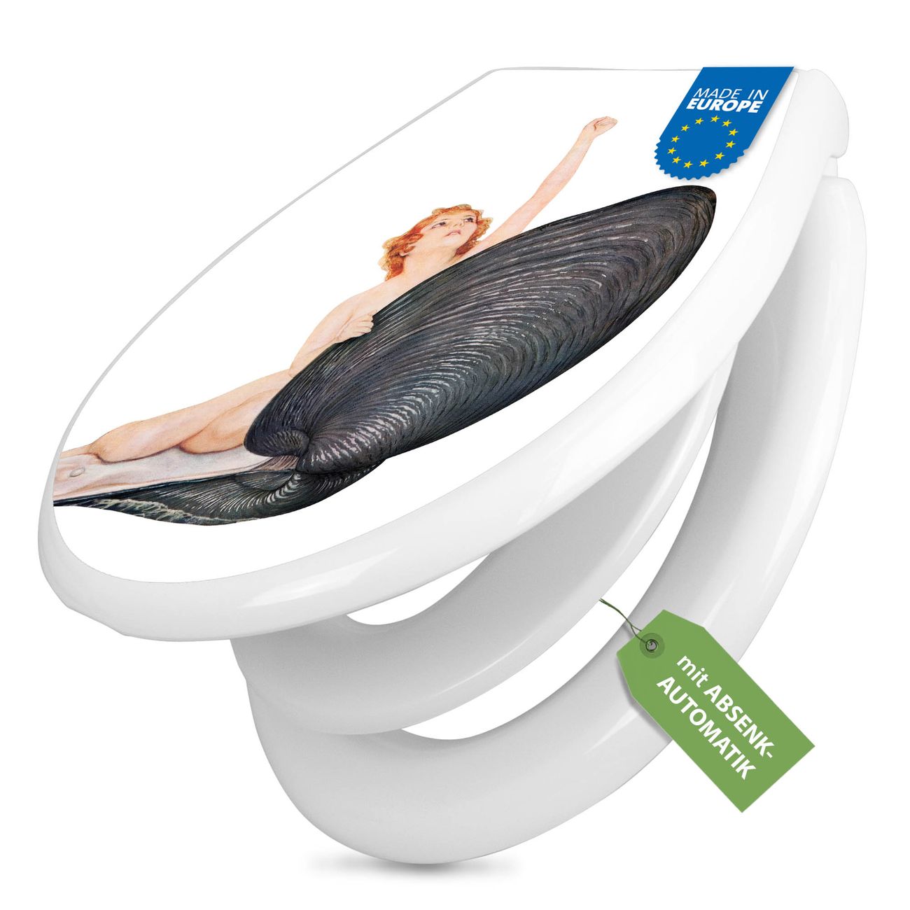 Toilettendeckel weiß mit Absenkautomatik Motiv Aufbruch aus der Muschel Vintage