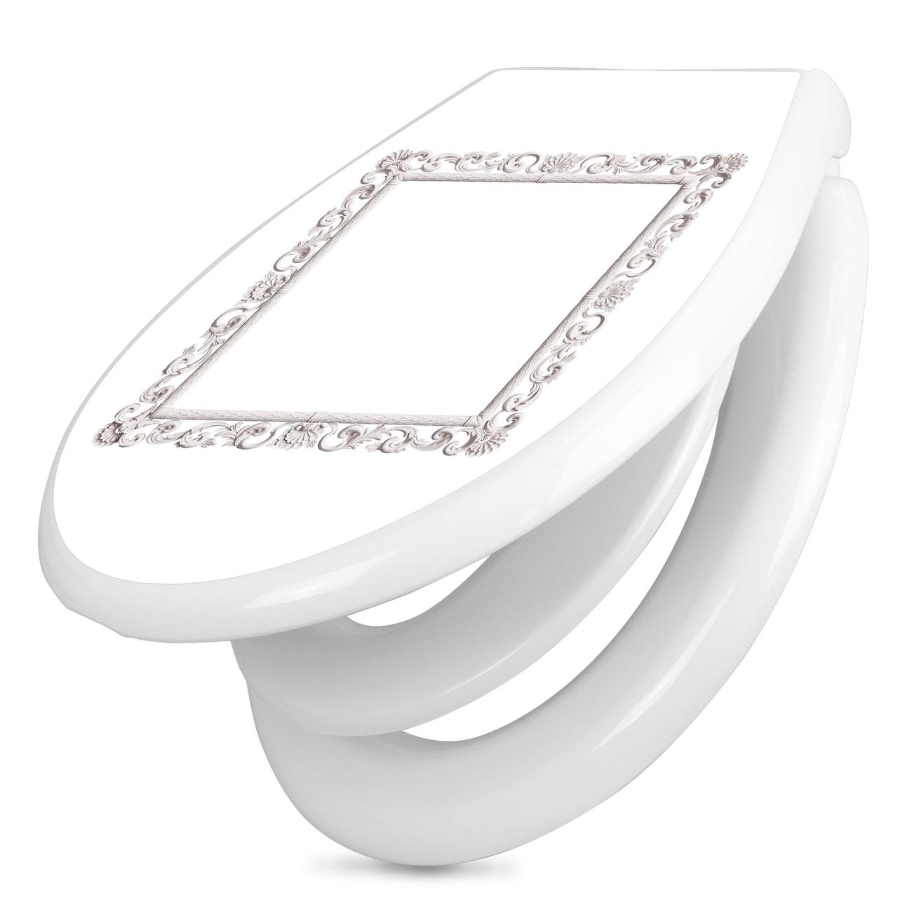 Toilettendeckel weiß mit Absenkautomatik Motiv Barocker Bilderrahmen