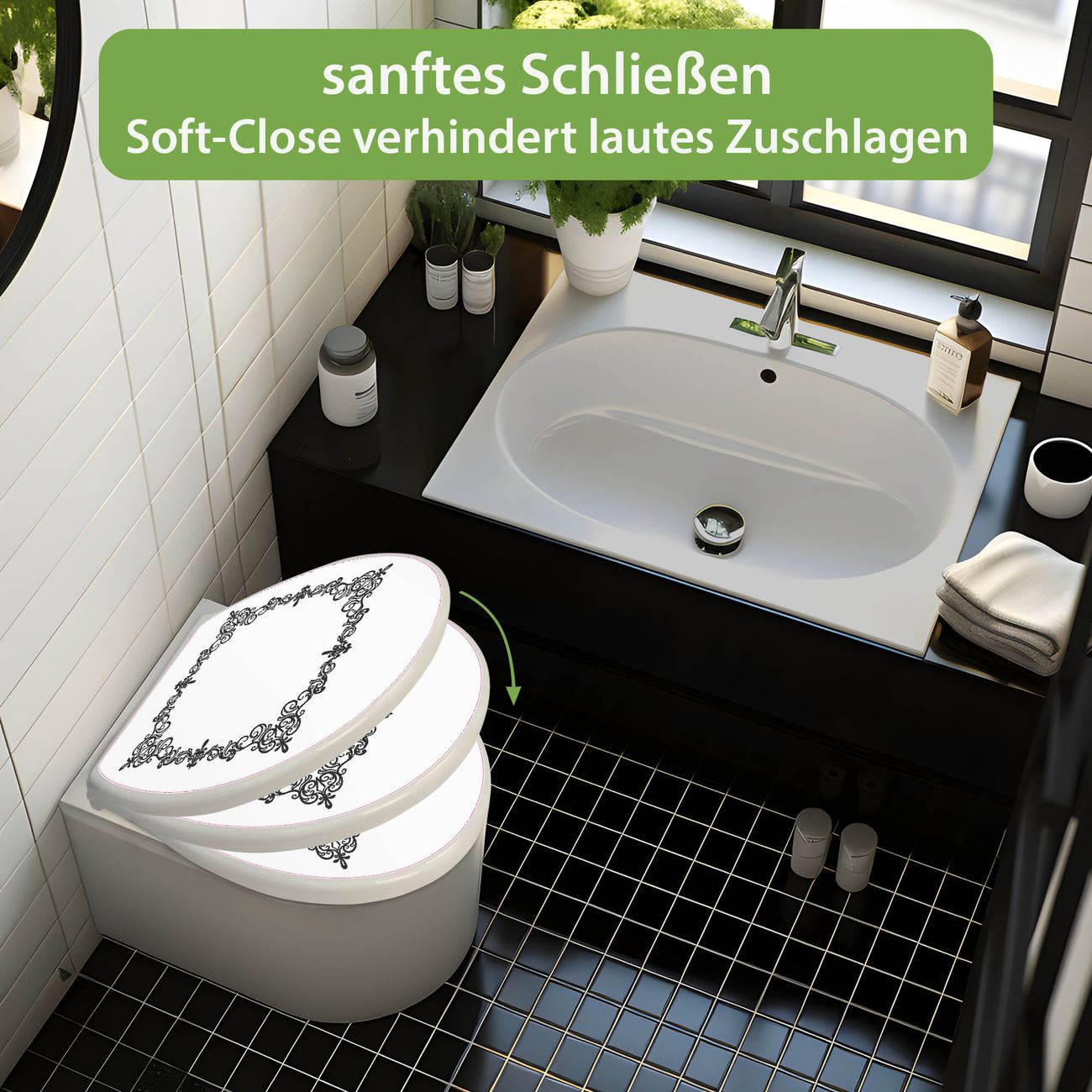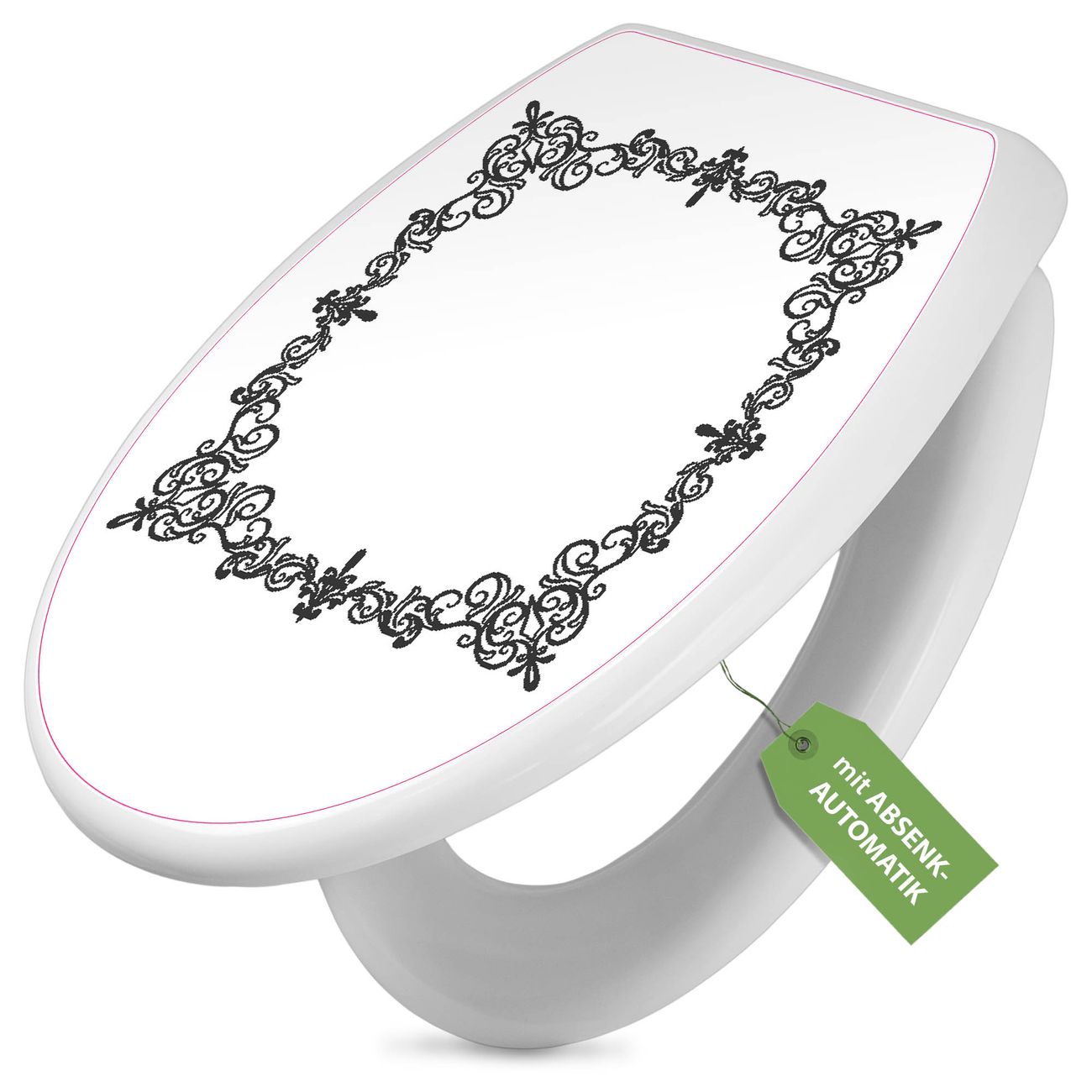 Toilettendeckel weiß mit Absenkautomatik Motiv Barockrahmen