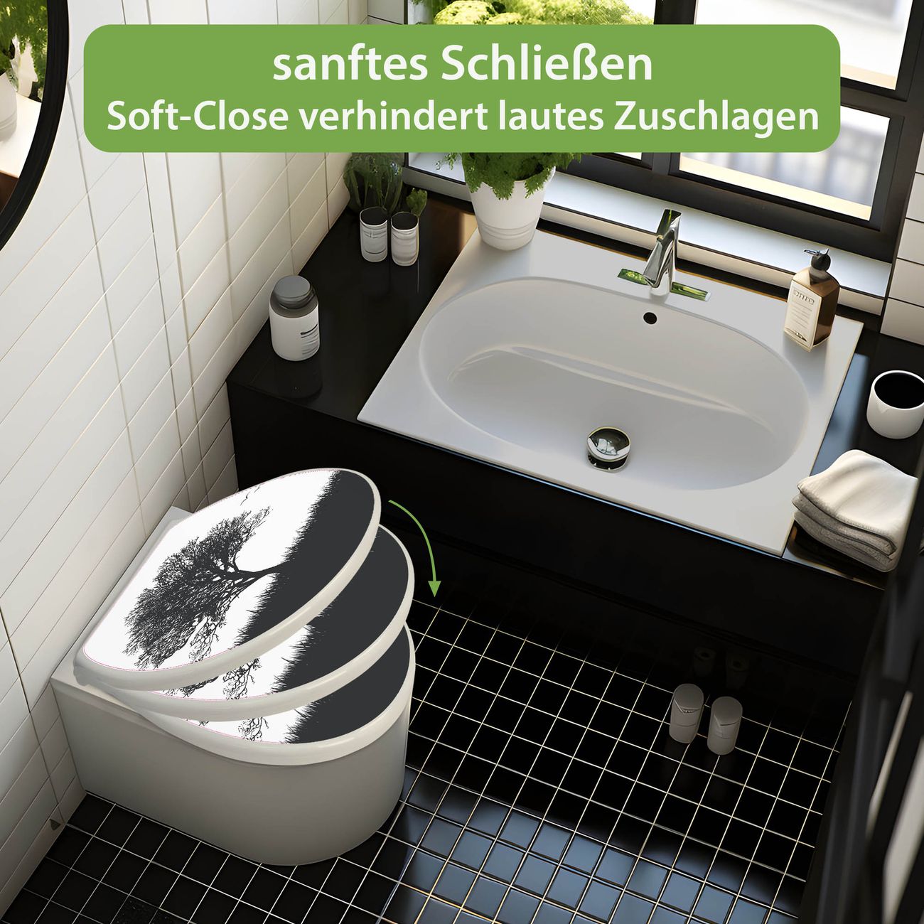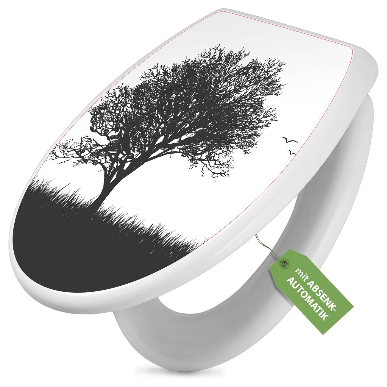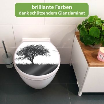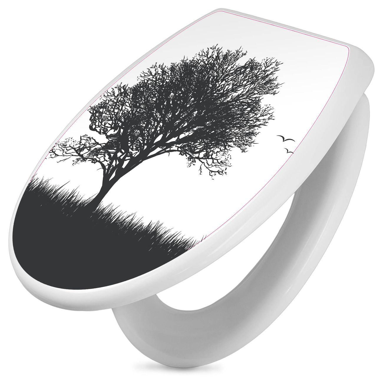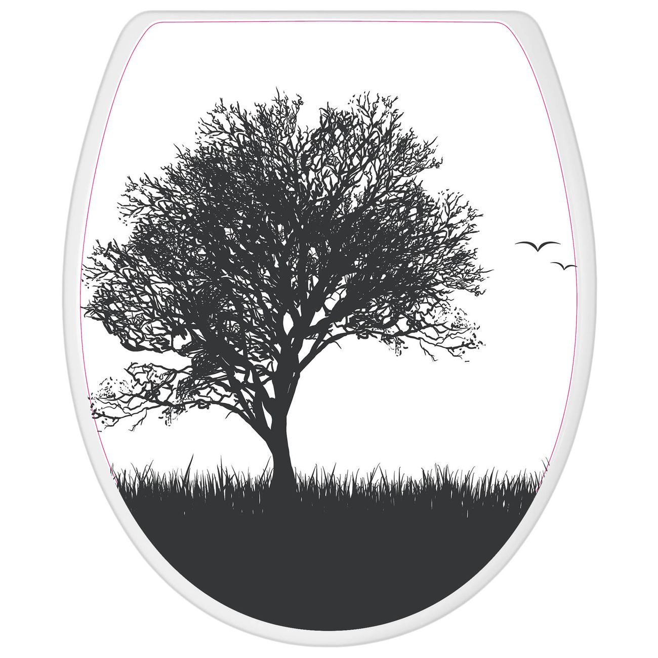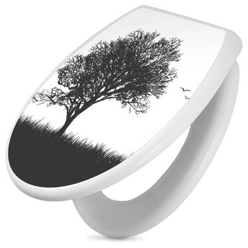 Toilettendeckel weiß mit Absenkautomatik Motiv Baum und Vögel Silhouette